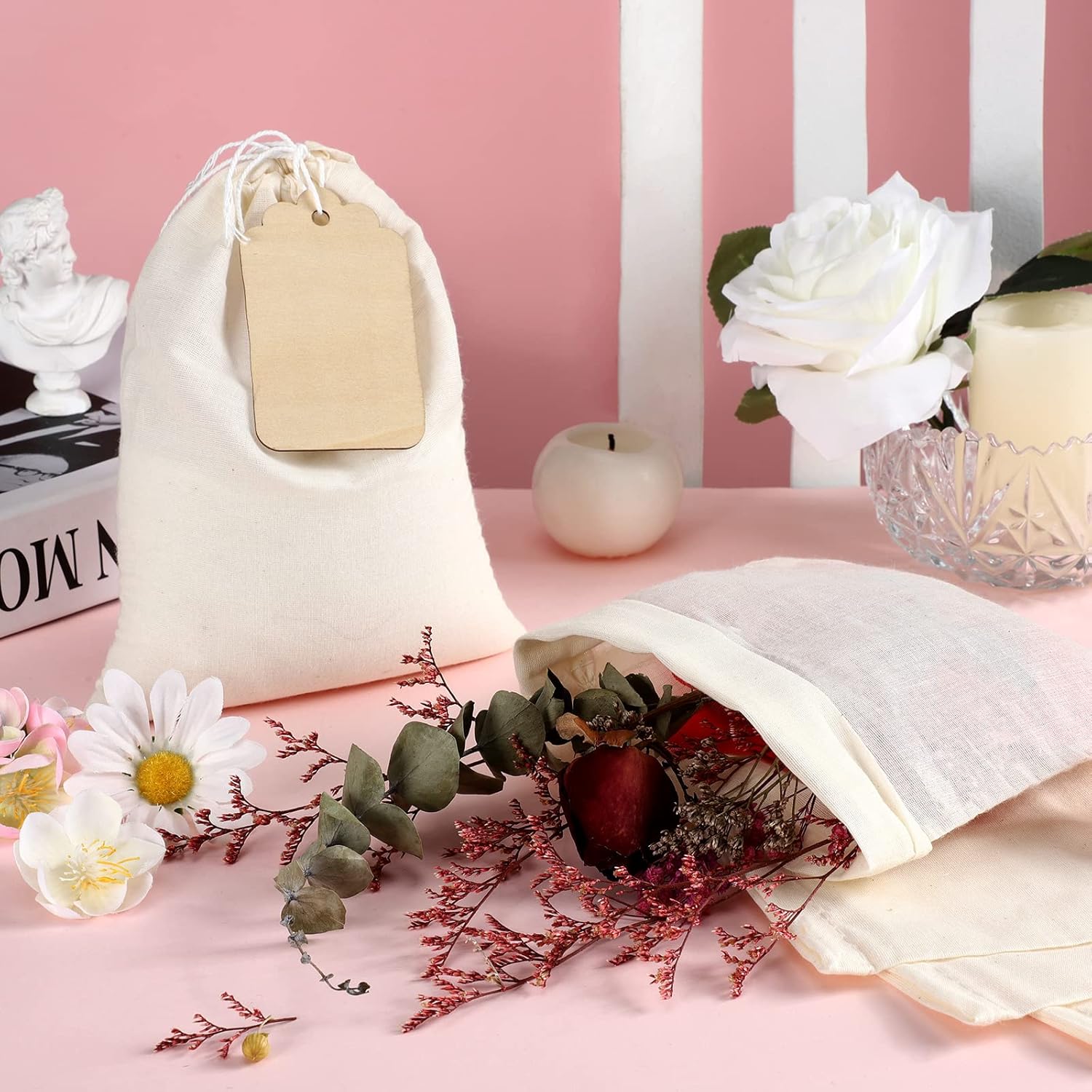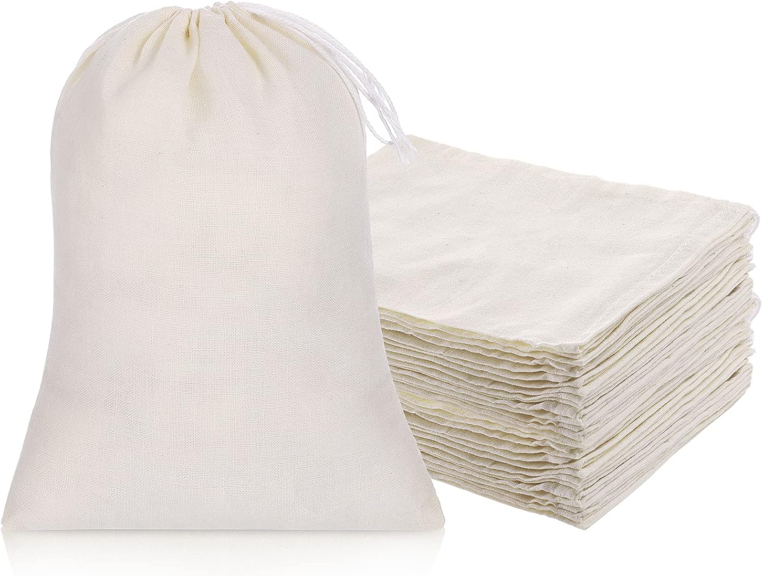 - Mesh design with drawstring: our cotton muslin bags are designed with fine mesh, which allow liquids to pass through but leave no particulates, debris or solids, each bag is equipped with a drawstring on the top, easy to use, just pull the drawstring to close the top, then the tea bag is bunched at the top, so tea leaves will not leak out, and will not be in a mess in the cup