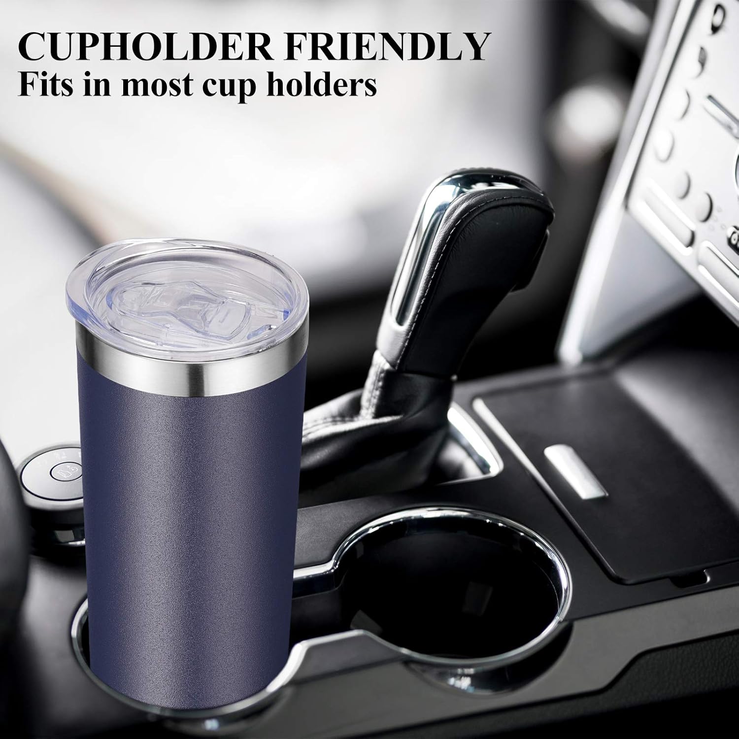 VEGOND Stainless Steel Tumblers Bulk 8 Pack, 20 oz Vacuum Insulated Skinny Tumblers with Lid and Straw, Double Wall Coffee Mug, Travel Water Cup, Navy Blue