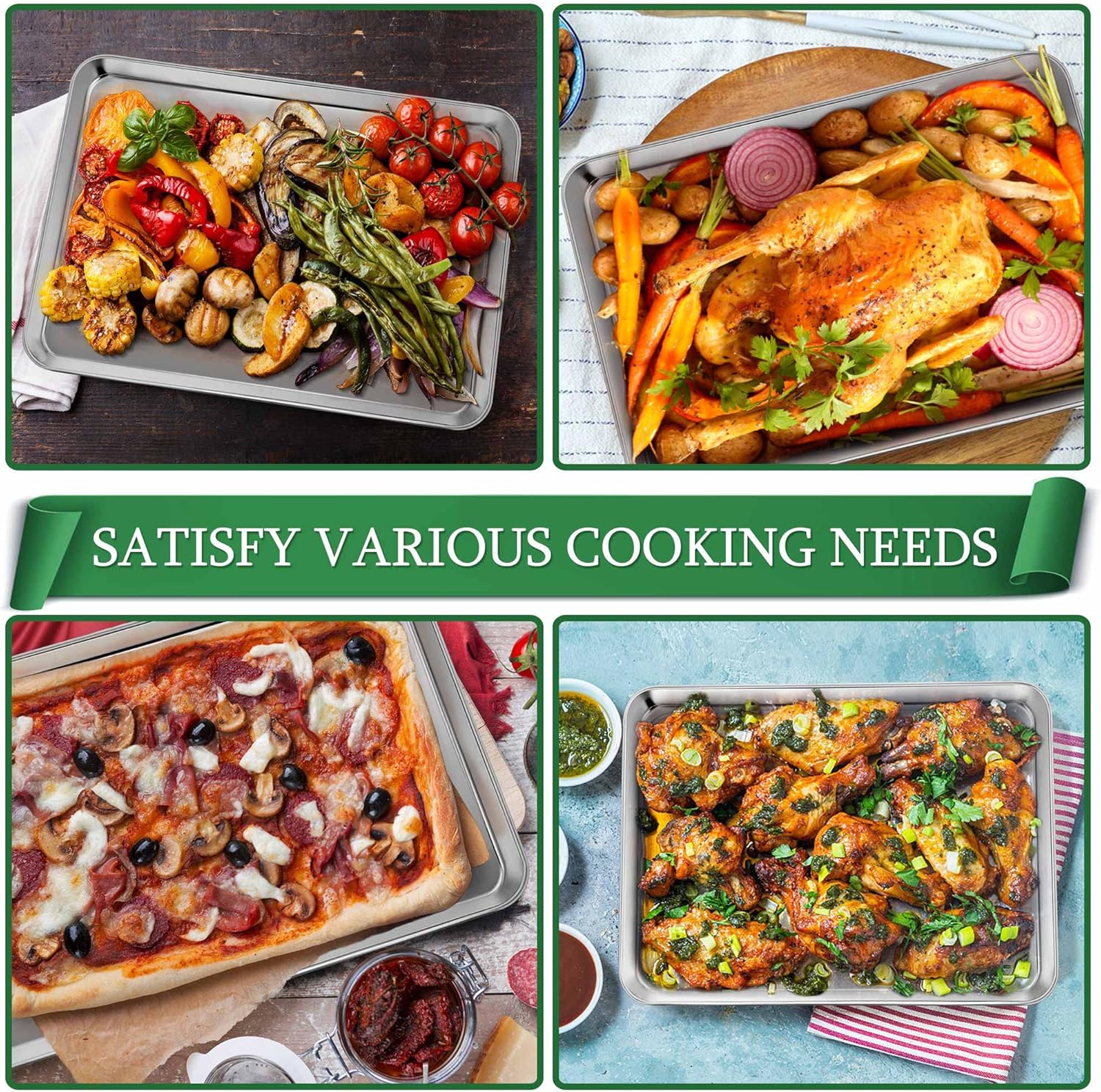 - 【NON-TOXIC & DURABLE】P&P CHEF baking sheet and rack set is made of premium pure stainless steel without any chemical coating or other material, Neither releasing toxic material to food, nor reacting with your meal, Heavy-duty structure can hold heavier food and will be durable for years of use, A better choice than aluminium or coated pans and racks
