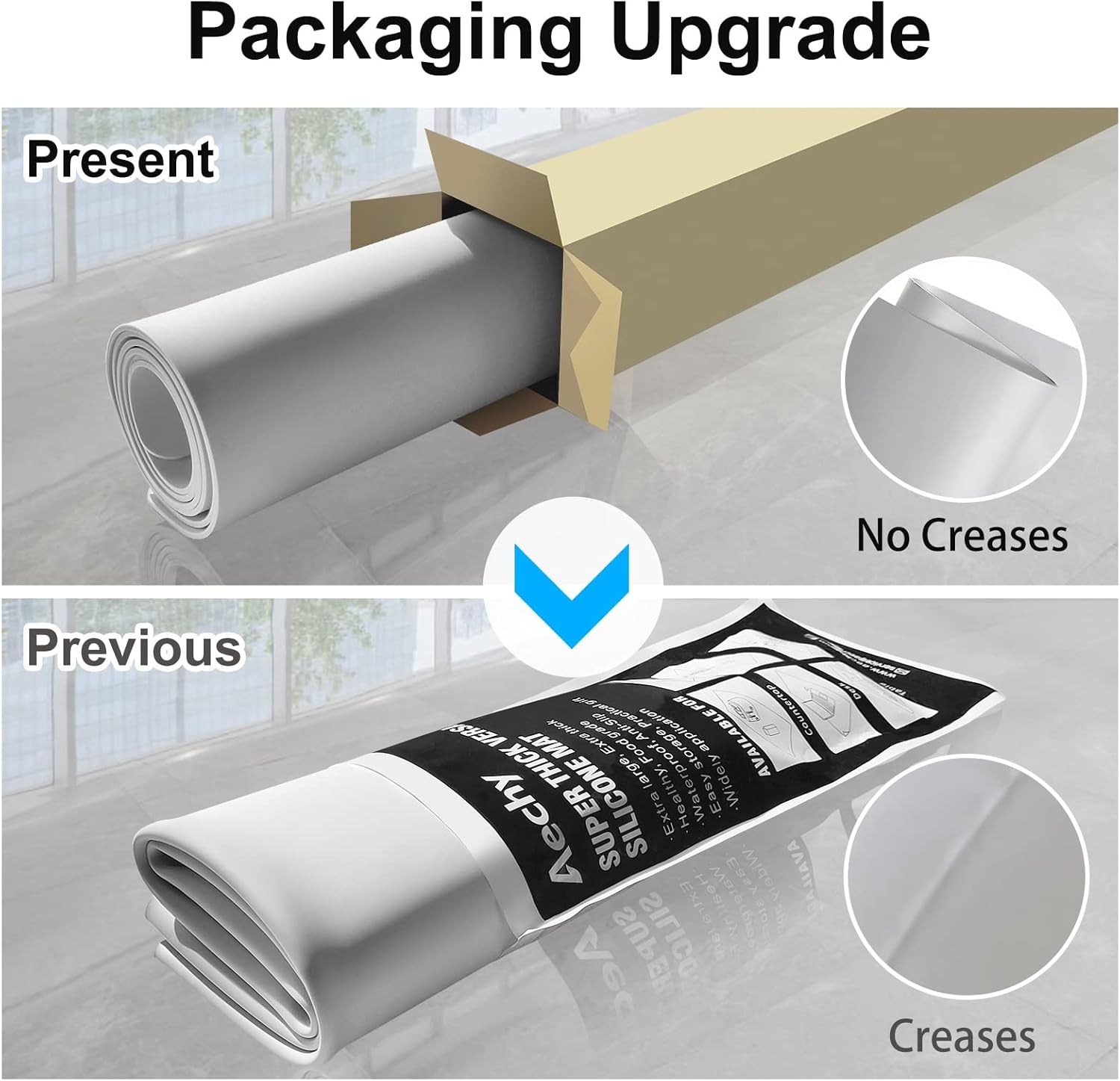 - 【ROLL UP AND SHIP 】: AECHY silicone kitchen counter mat packaging is upgraded from folding to rolling, in order to provide customers with a better experience. You will no longer suffer from mat crease. The 35.3"x23.5"x0.08" extra large silicone mat is big enough to meet your needs about protecting all size countertop. One dollar coin thickness, up to twice as thick as regular silicone craft mat. The mat lay flat without any wrinkle, stronger and more durable.