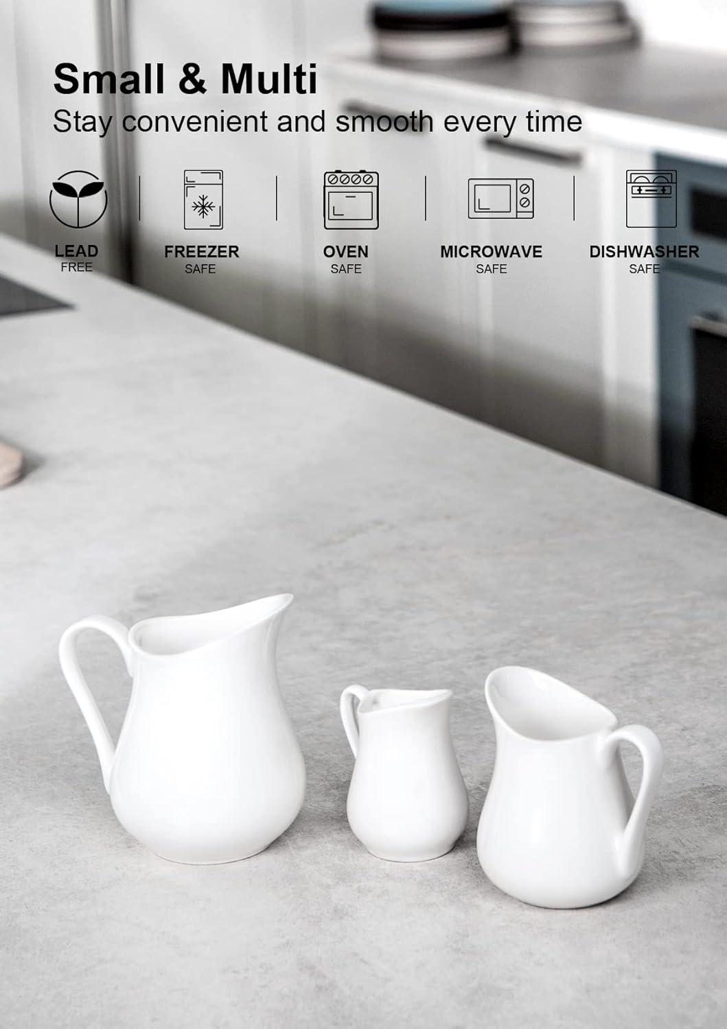 - 🍨 Warm Tips: Notice the cream pitcher small size and capacity suit for serving milk cream for coffee; Premium porcelain creamer - Microwave & Freezer Safe.