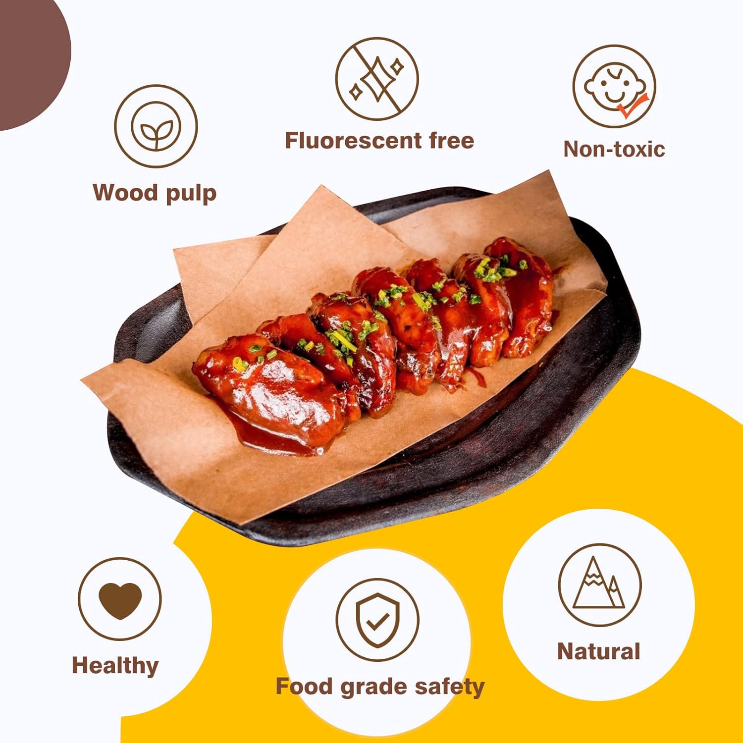 - Natural & Healthy - Unbleached parchment paper is made from 100% pure wood pulp, and totally fluorescent free. Compared to recycled paper, kosher certificated, non-toxic, two-sided silicone coating bring you a healthy and safe diet.