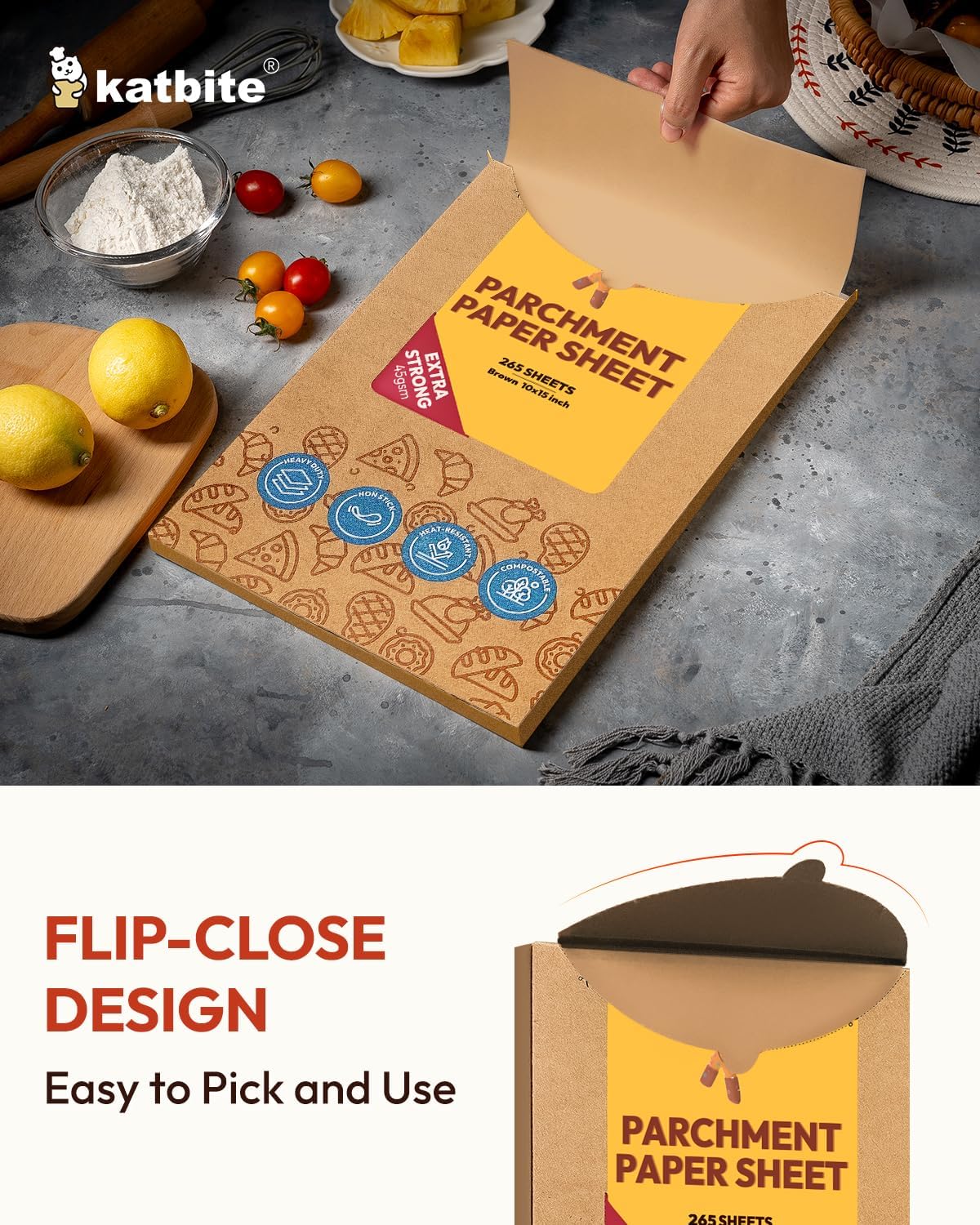 Katbite 265Pcs 10x15 inches Parchment Paper Sheets, Heavy Duty Unbleached Baking Paper, Pre-cut and Oil Proof Perfect for Steaming Cooking Bread Cake & Wrapping Foods[Advanced Series]