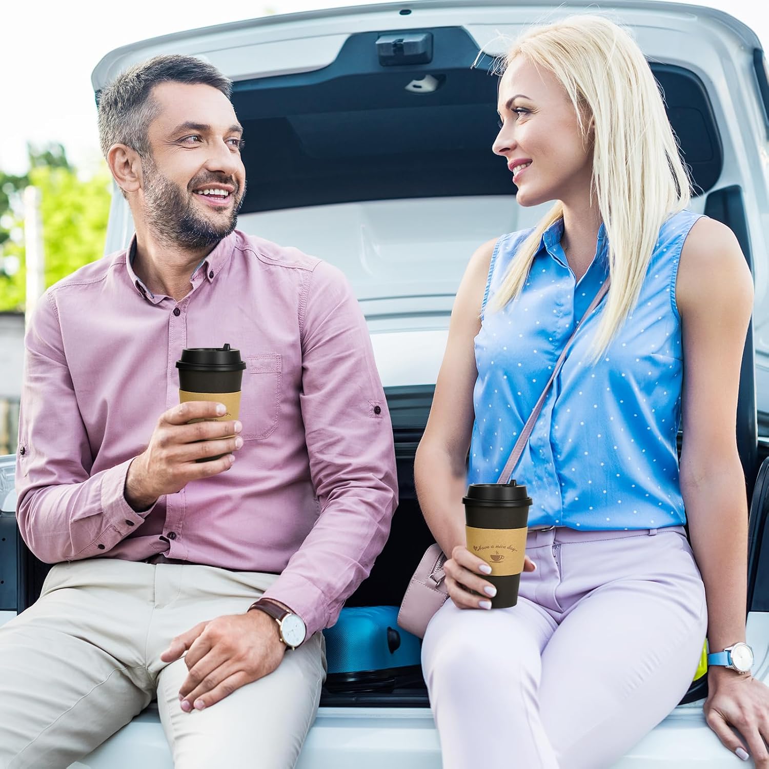 - Great Value Bulk: You will receive 100 coffee cups with black bodies, 100 packs of black matching lids, 100 kraft paper filled cup sleeves, and 100 straws; This set of 16 oz disposable coffee cups has the quantity to meet your family and party needs