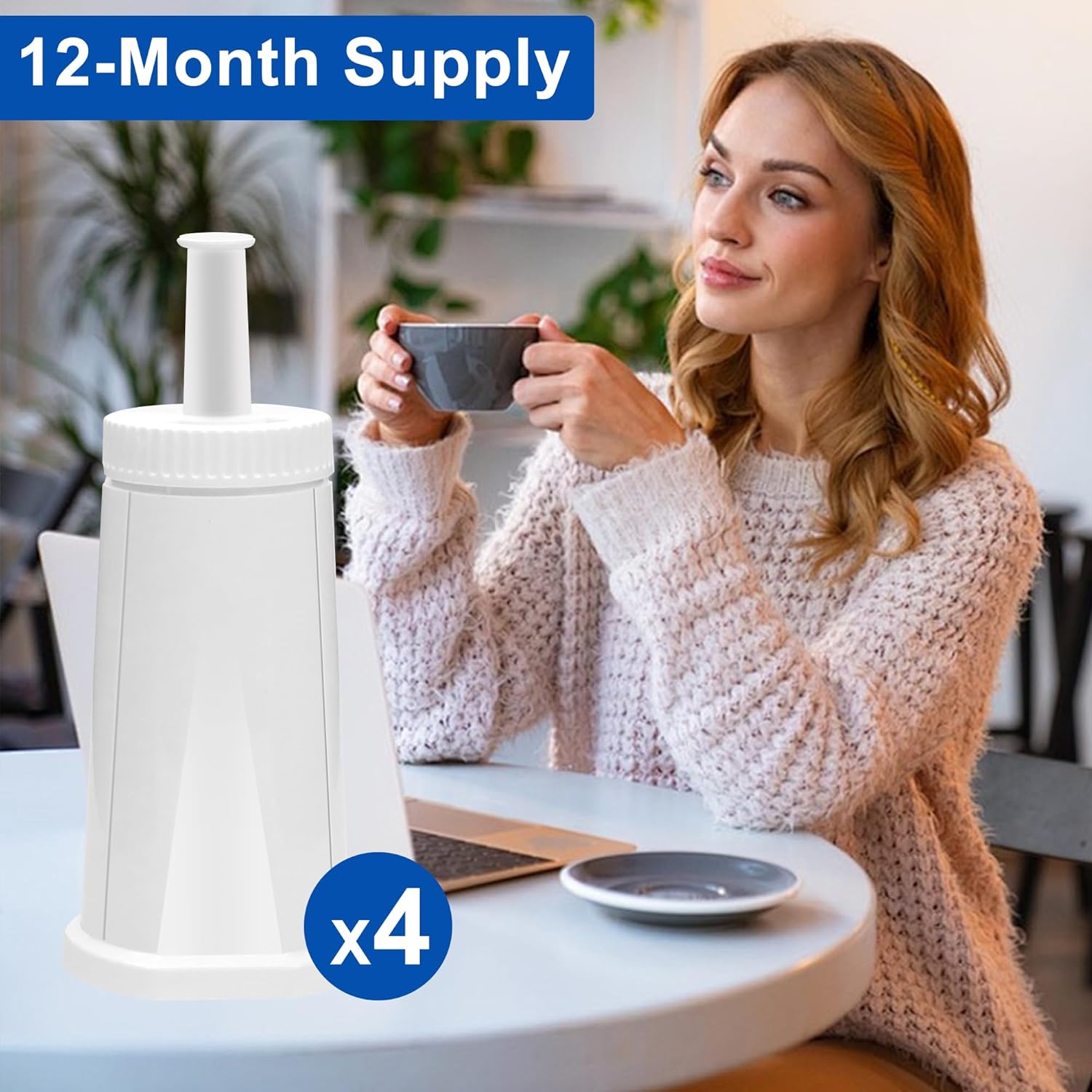 - ๐๐ซ๐๐๐ญ ๐๐๐ฅ๐ฎ๐ ๐๐ง๐ ๐๐จ๐ง๐ - ๐๐๐ฌ๐ญ๐ข๐ง๐ : Each package offers excellent value, with 4 individual filters. We recommend replacing the filter every 3 months for optimal performance, providing you with a 12 - month supply depending on the pack size.Remove impurities, reduce water hardness and better improve the flavor of coffee. It is you who can enjoy the feeling and charm of a coffee shop without leaving your home.