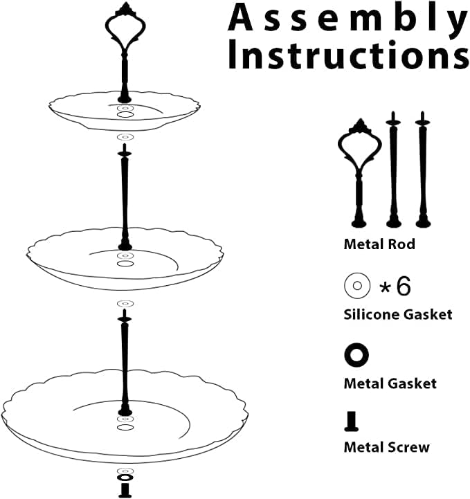- Multiple usage scenarios: Elegant three-tier cake stand is perfect for putting on dinner feast, wedding, holiday party, baby shower, to provide delicious desserts for your friends or family.Create a sense of balance and romance.