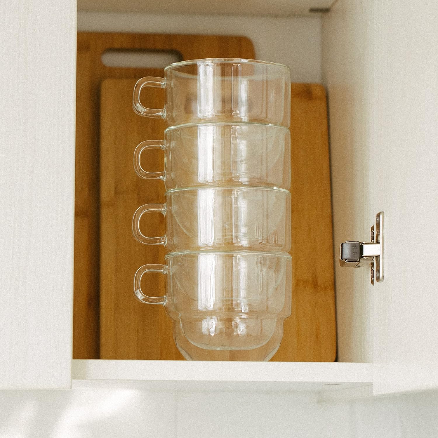 BTaT- Stackable Insulated Coffee Mugs, 4 Pack 16 oz(500 ml), Ideal for Hot and Cold Drinks, Stackable Cappuccino Cups, Double Wall Glass Coffee Cups, Tea Cups, Latte Cups, Beer Glasses, Latte Mug