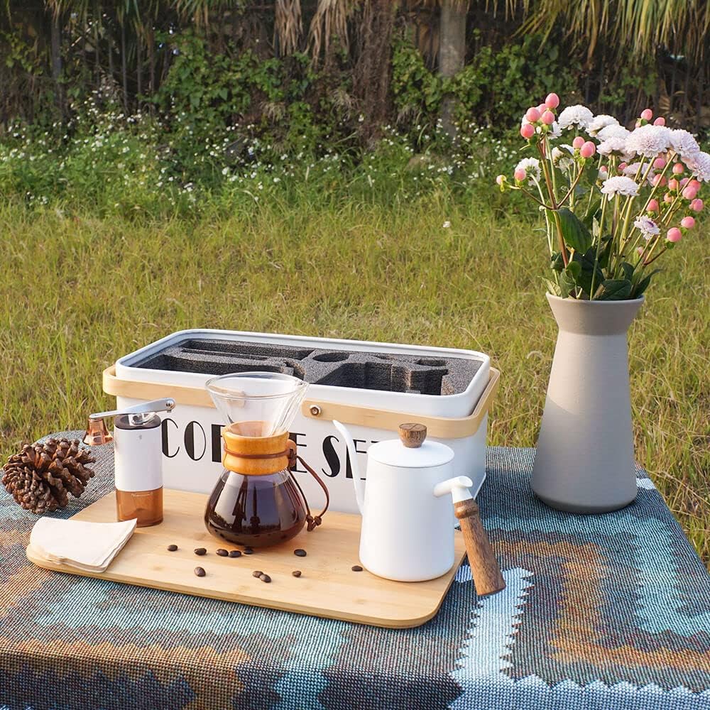 - Private coffee bar:Pour over coffee maker set with a metal box is portable,you can carry it everywhere as a private coffe bar,wonderful day with wonderful mood-Relax yourself.