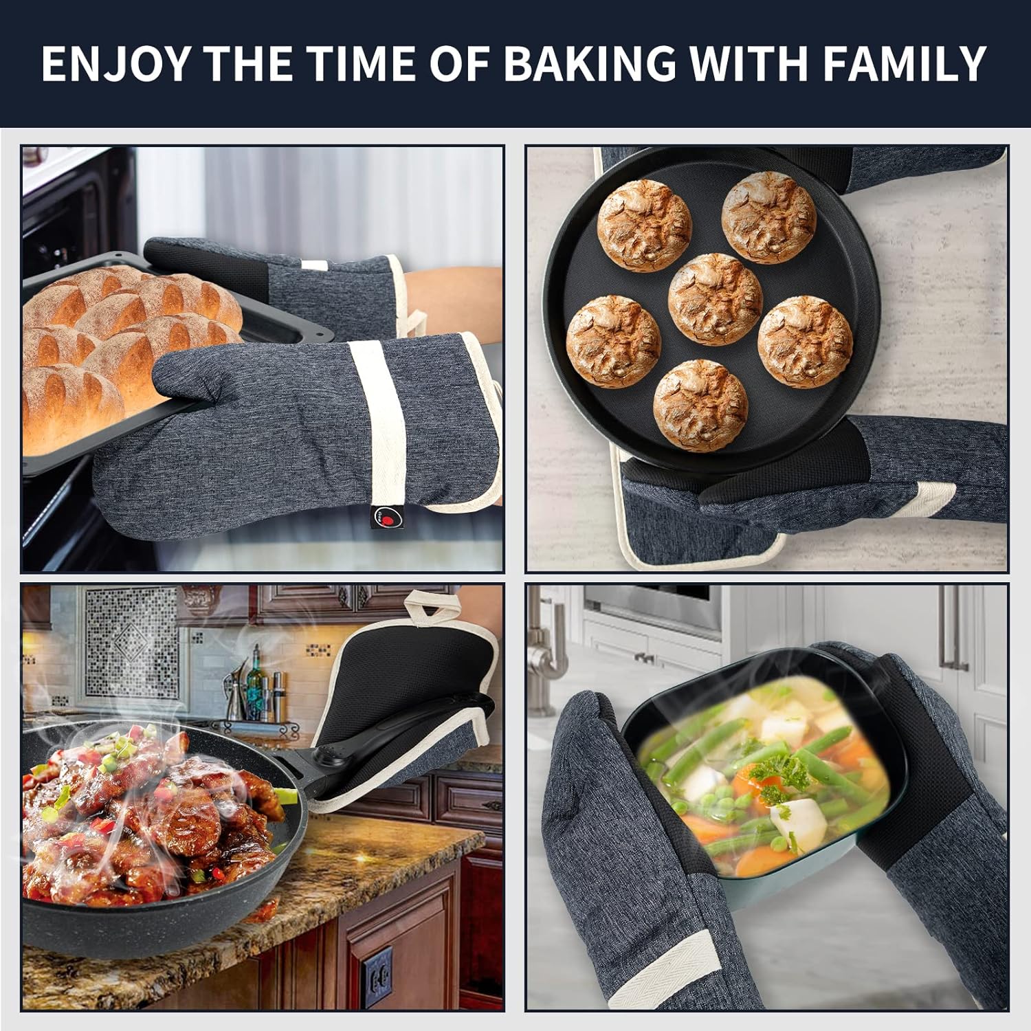 - NON-SLIP SILICONE DESIGN: The neoprene material in these oven mitts and potholders provides a better grip, so you're less likely to drop food while cooking.