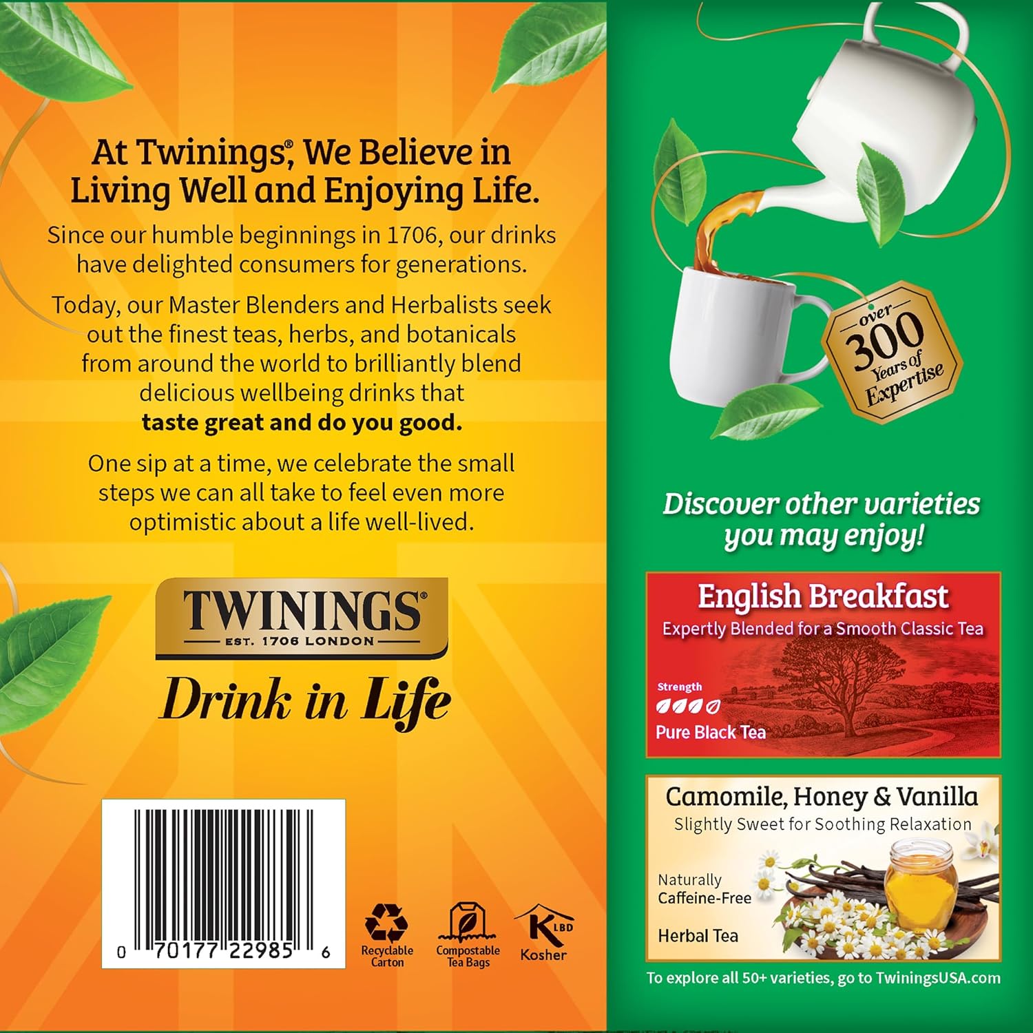 - INDIVIDUALLY SEALED TEA BAGS STAY FRESH: Take your tea on the go in your purse, workout bag, backpack, school or work desk or car; Each tea bag is sealed for freshness so every cup of Twinings is the perfect cup of Twinings