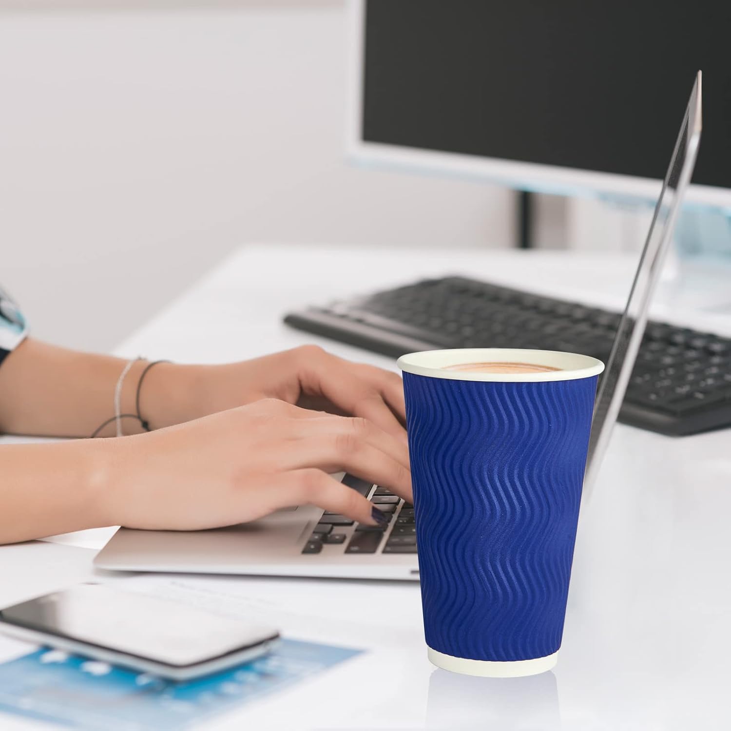 - Unique Modern Design: Disposable coffee cups 16 oz elegant and minimalistic S shape pattern elevate the look of your home brewed coffee to go! These ensure us a secure nonslip grip and a better feel in the hand