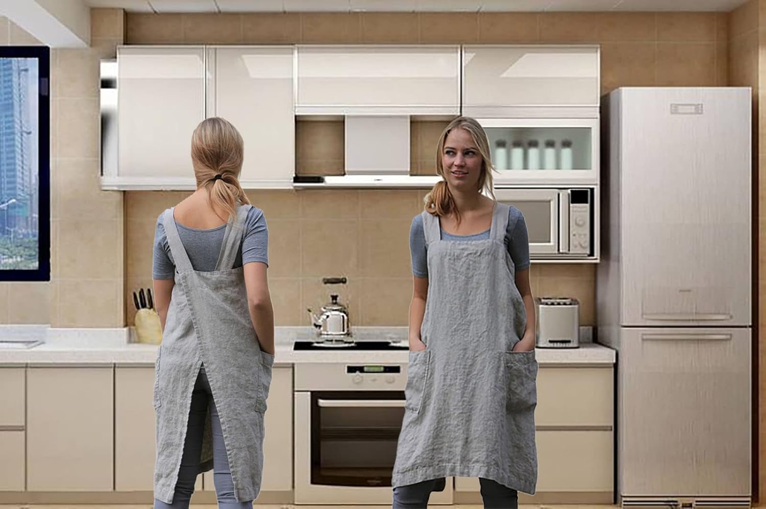 ZQFFB Pinafore Cross Back Apron for Women with Pockets Japanese Smock for Work Gardening Cooking Painting Baking
