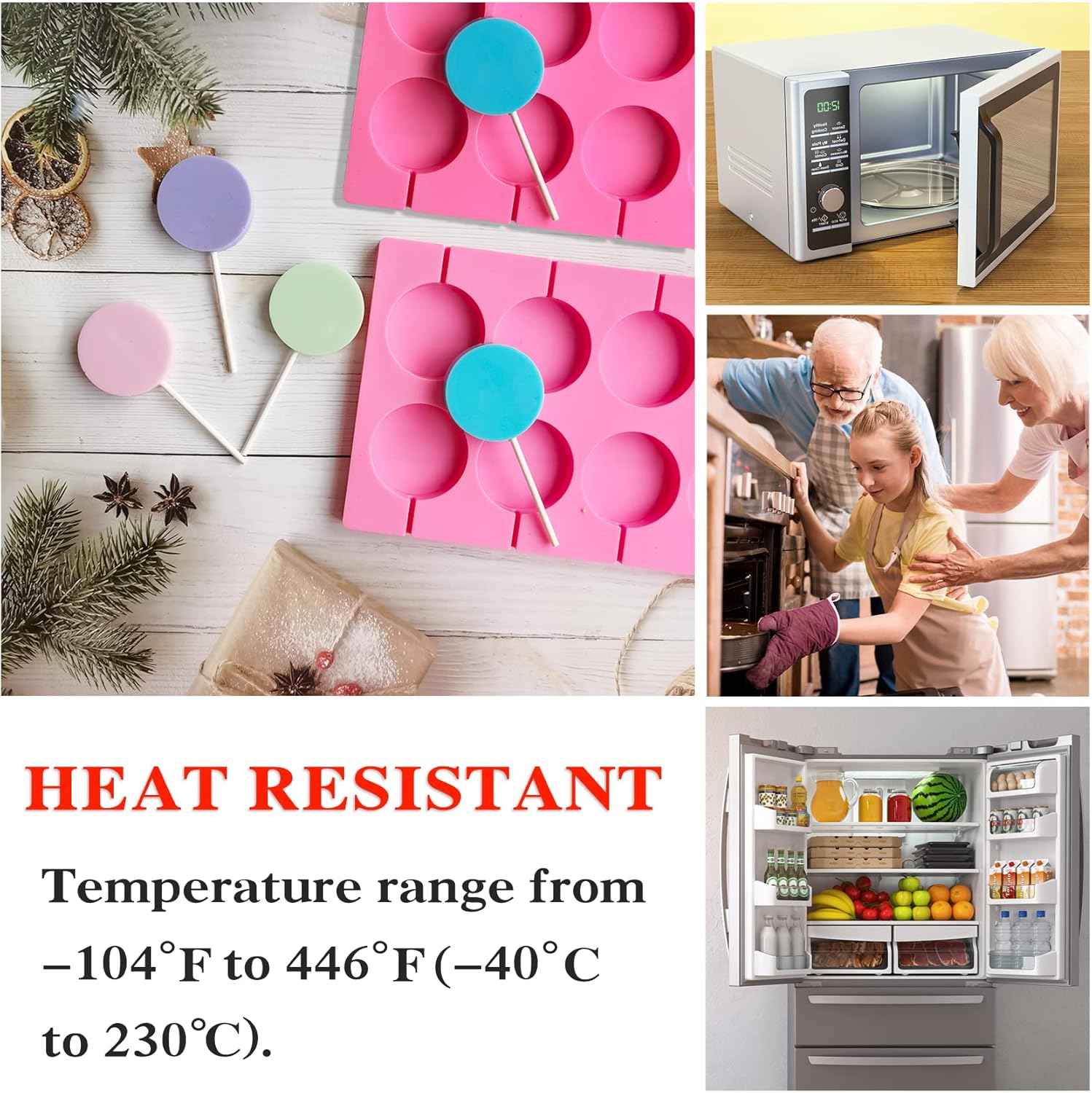 - 🍭【Safe and Heat Resistant】Lollipop Molds is made of safe food grade silicone hard candy silicone, which can be used with confidence. , Easy to form, suitable for microwave, refrigerator, dishwasher and oven.