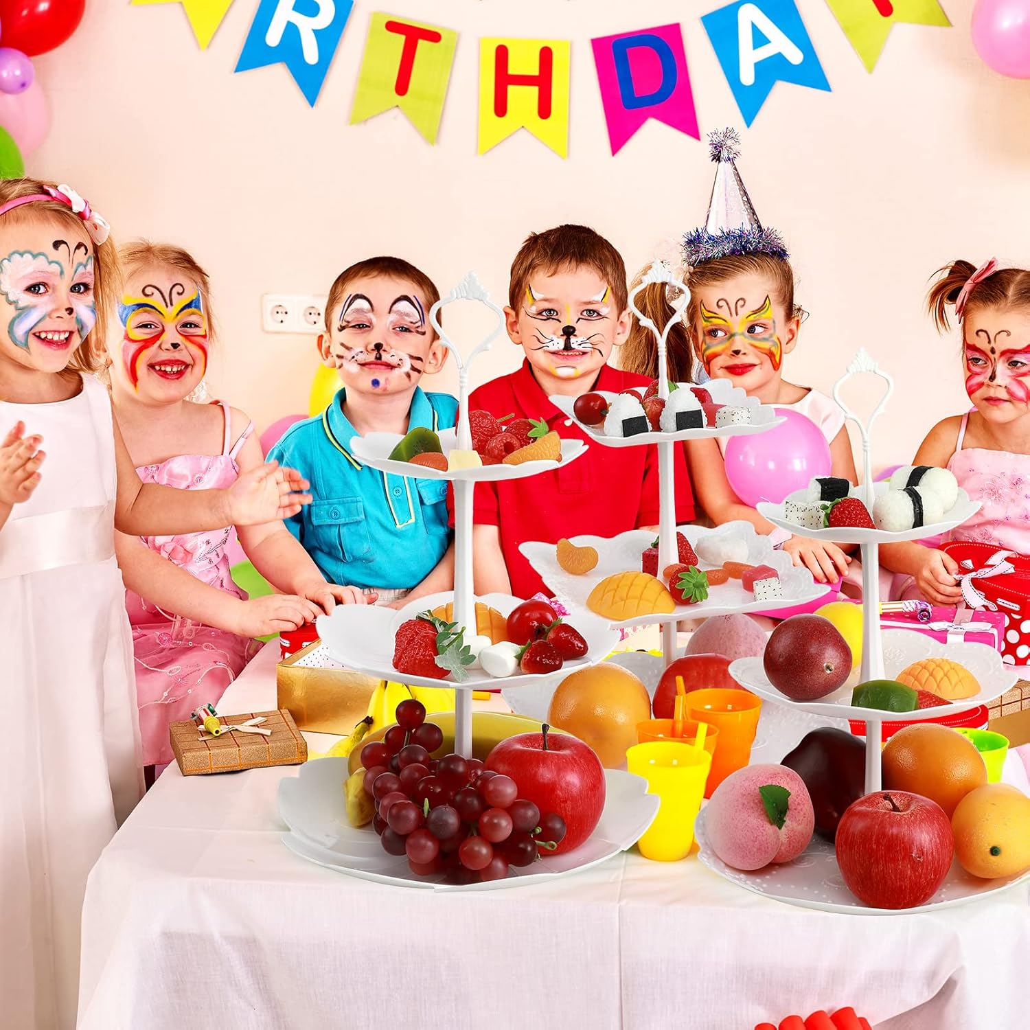 - Satisfy Your Needs: the package contains 6 pieces of 3 tiers serving tray decors, they are designed in 3 different shapes, the sufficient quantity is enough to satisfy your daily use and change, they can show your carefully prepared dessert snacks and cakes
