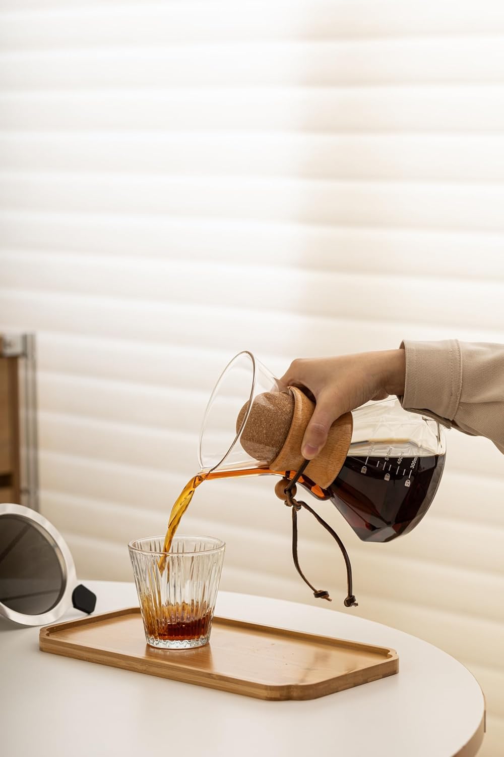 Pour Over Coffee Maker With Wood Sleeve,20oz/600mlPour Over Coffee Dripper,Pour Over Coffee Maker Set With Cork Stopper (20oz/600ml)
