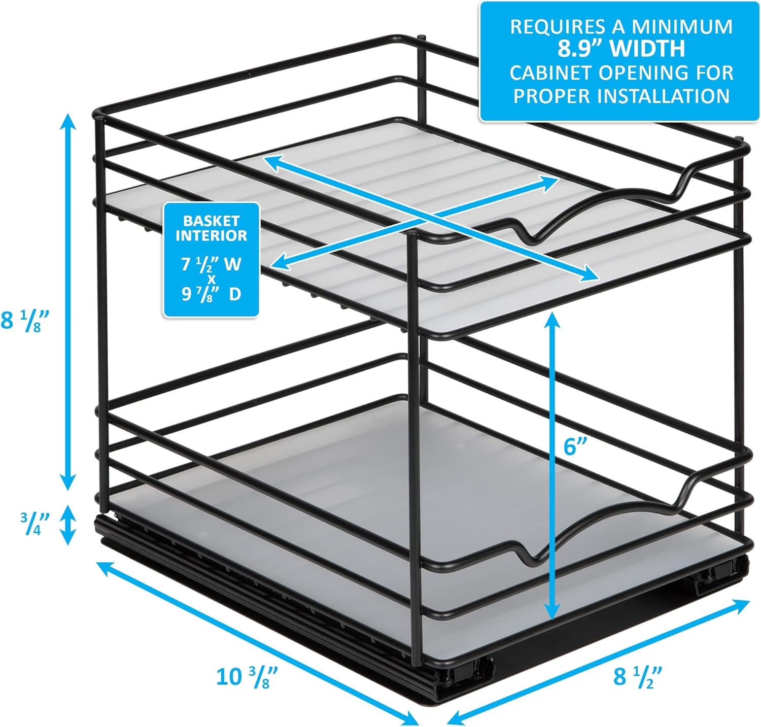 Pull Out Cabinet Organizer for Spices, Cans - Heavy Duty with Lifetime Limited Warranty- Pull Out Spice Rack- Cabinet Pull Out Shelf for Cans,Dishes, Etc, 8-1/2"Wx10-3/8"Dx8-7/8"H, Black