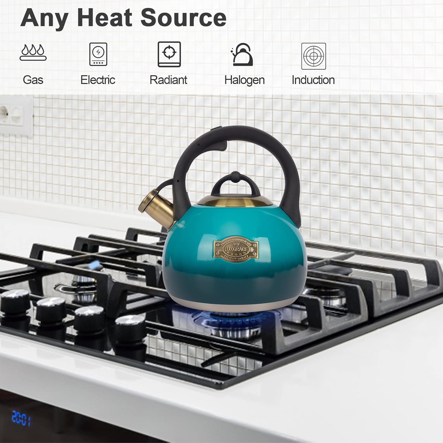 - Stainless Steel Design:Whole teakettle body are made of stainless steel, The thick body making it more durable and sturdy. 5-layer metal bottom with high thermal conductivity for more uniform heating and longer service life.