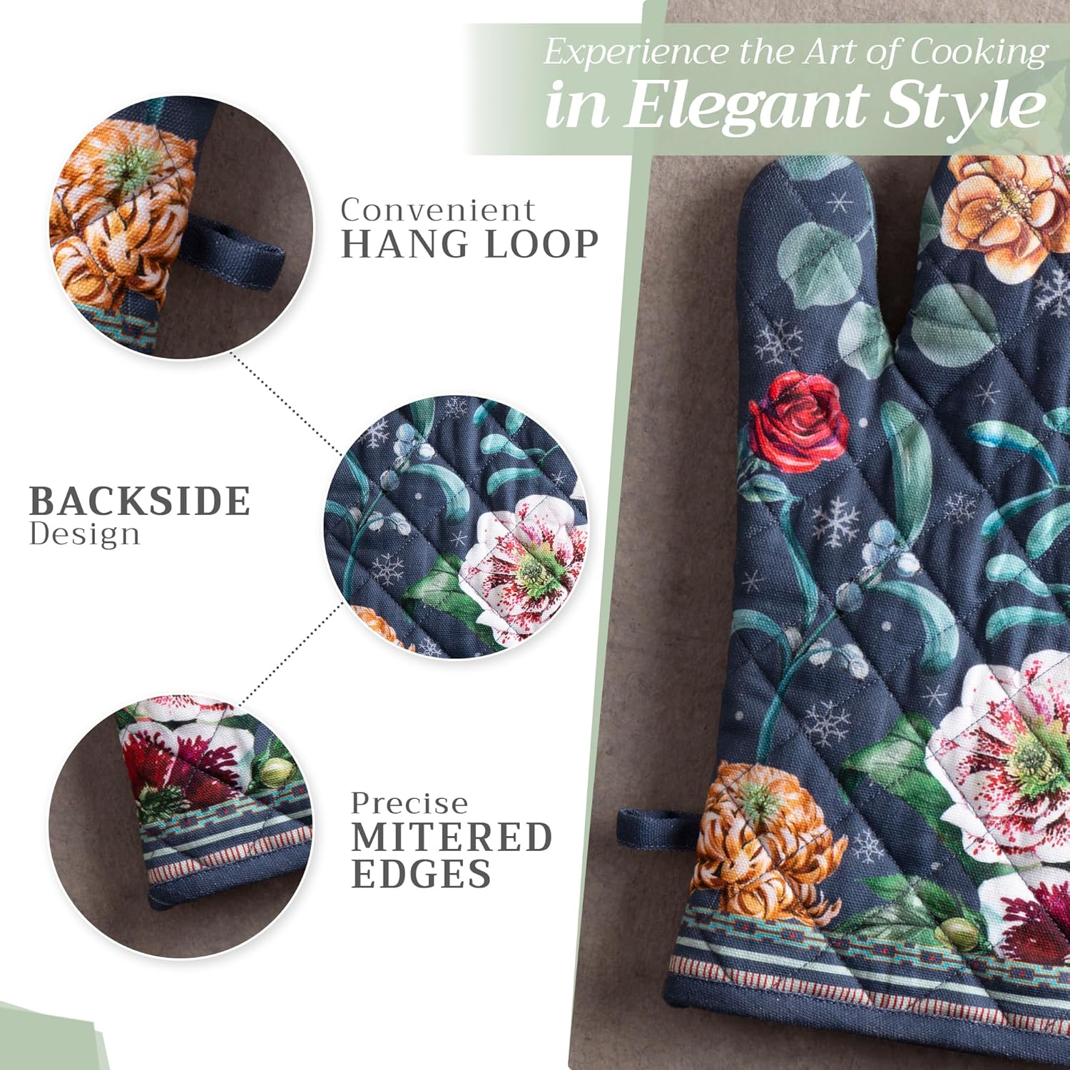 Maison d' Hermine Oven Gloves 100% Cotton Oven Mitt 7" x 13" with Loop Heat Resistant, BBQ, Cooking Gloves, Baking, Grilling, Kitchen, Handling Hot Pans (Pack of 1, Christmas Joy)