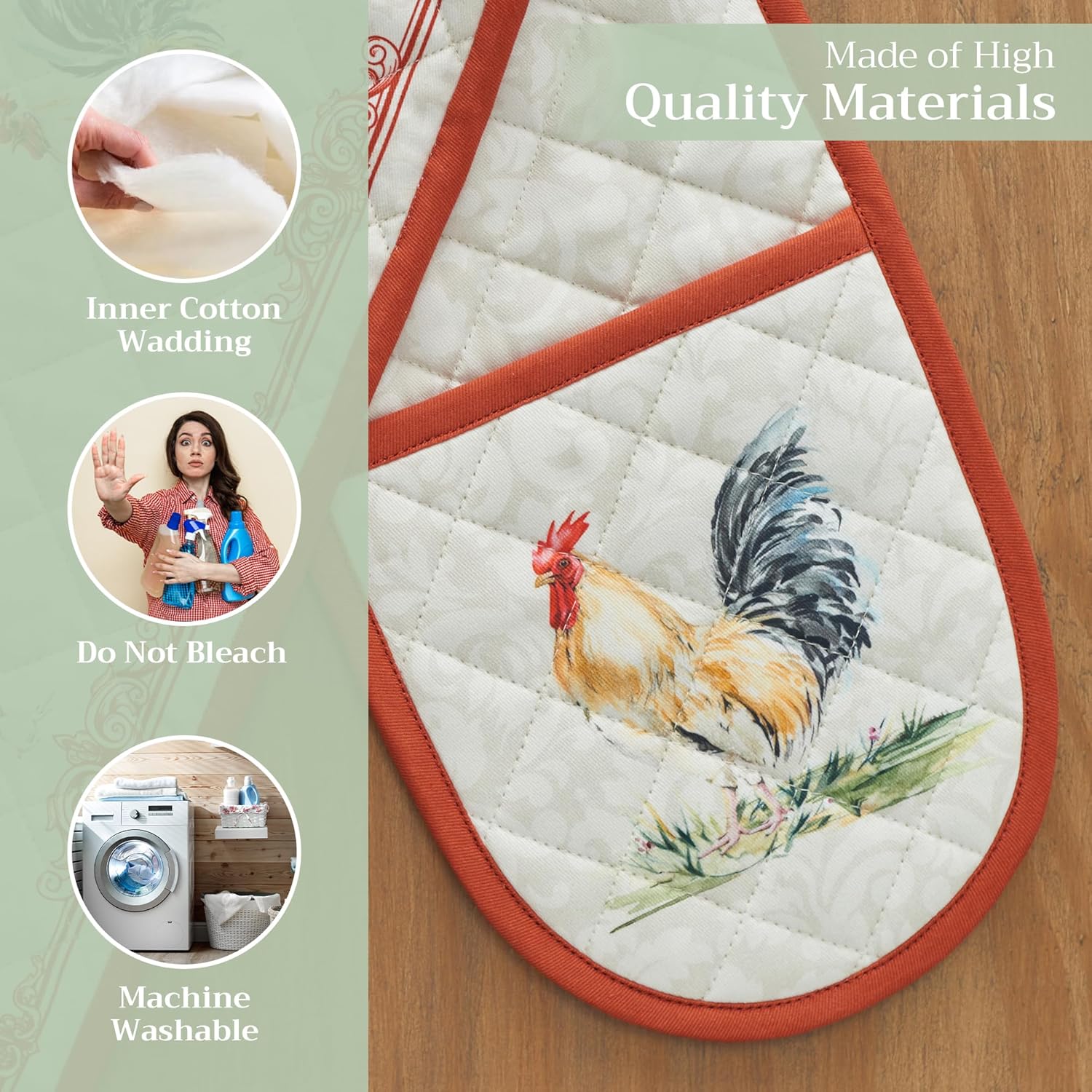 - 100% Quilted cotton: Crafted from premium quilted cotton for superior heat resistance and durability. This double oven mitt offers a soft, flexible grip and protects your hands during baking, roasting, or grilling
