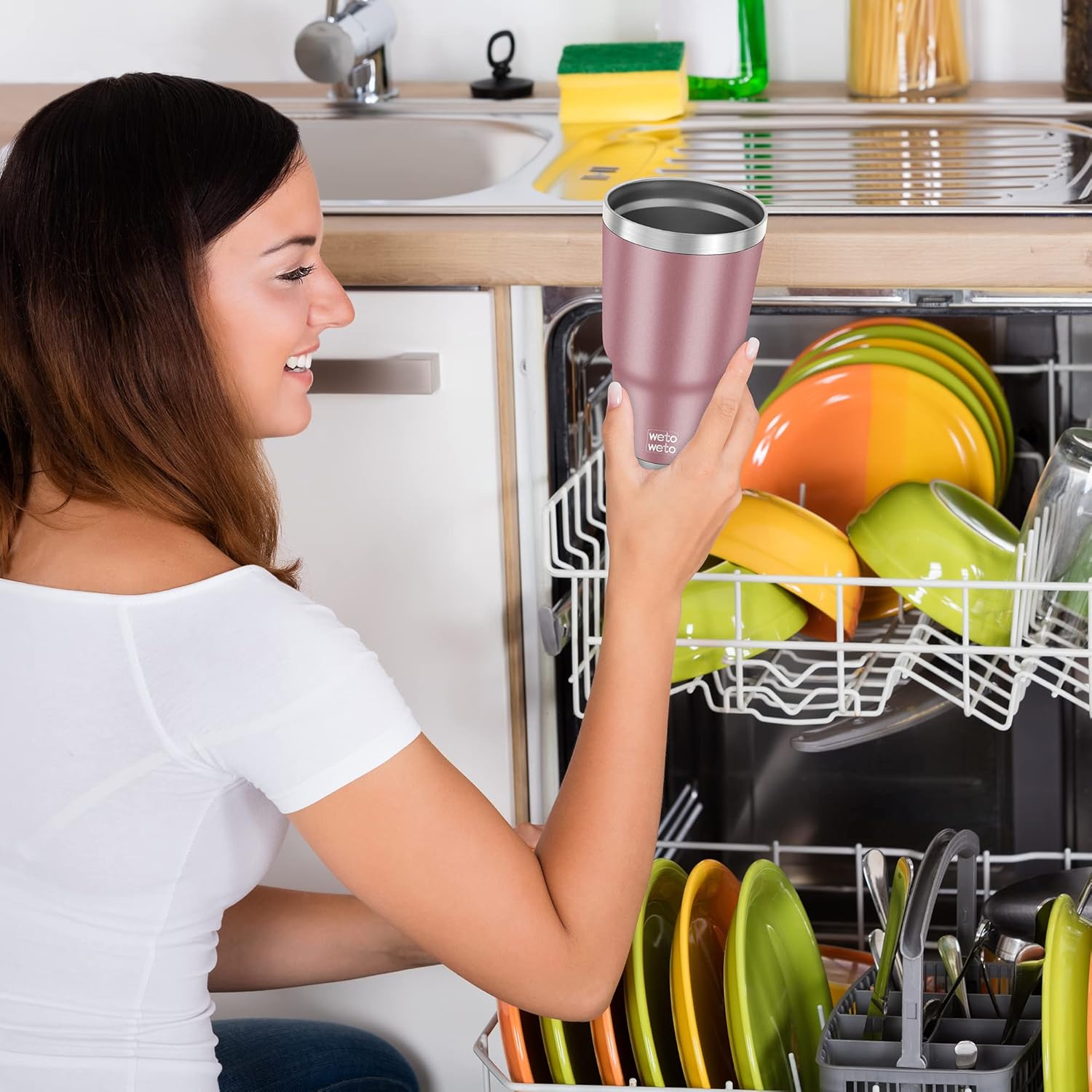 - [ ๐๐ถ๐๐ต๐๐ฎ๐๐ต๐ฒ๐ฟ ๐ฆ๐ฎ๐ณ๐ฒ & ๐๐ฎ๐๐ ๐๐ผ ๐๐น๐ฒ๐ฎ๐ป ] - The vacuum travel mug has a wide mouth, which is very convenient to clean, and can also support dishwasher cleaning, no longer have to worry about the cleaning of the mug anymore. The coffee thermos comes with two lids that are BPA-Free, so you can use them as you like.