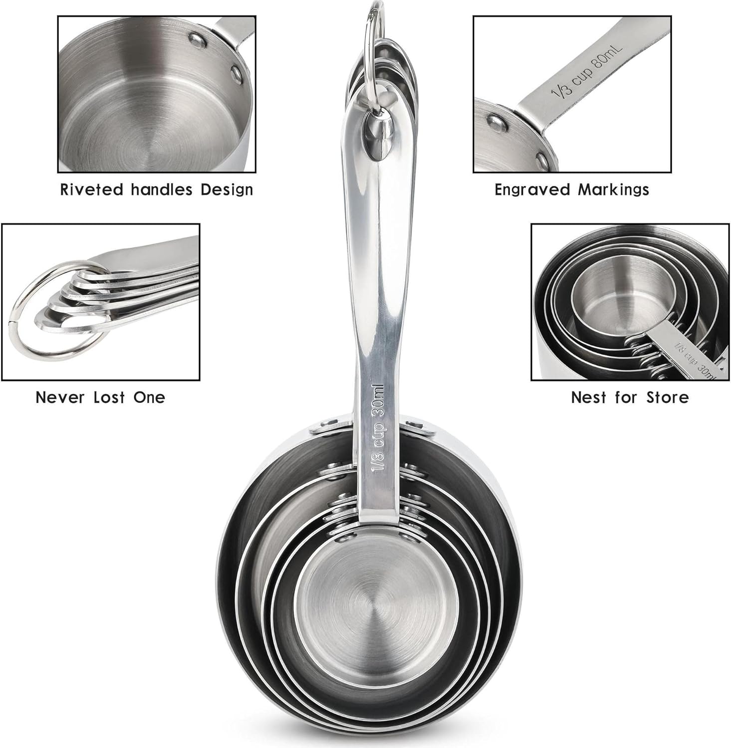 - ✱✱ Every stainless steel metal measuring cups and spoons set: this set has the accurate measurements size in US and Metric engraved on the handle clearly, what will help you reduce any measuring errors for cooking or baking! for dry measuring cups and liquid measuring cups in kitchen!