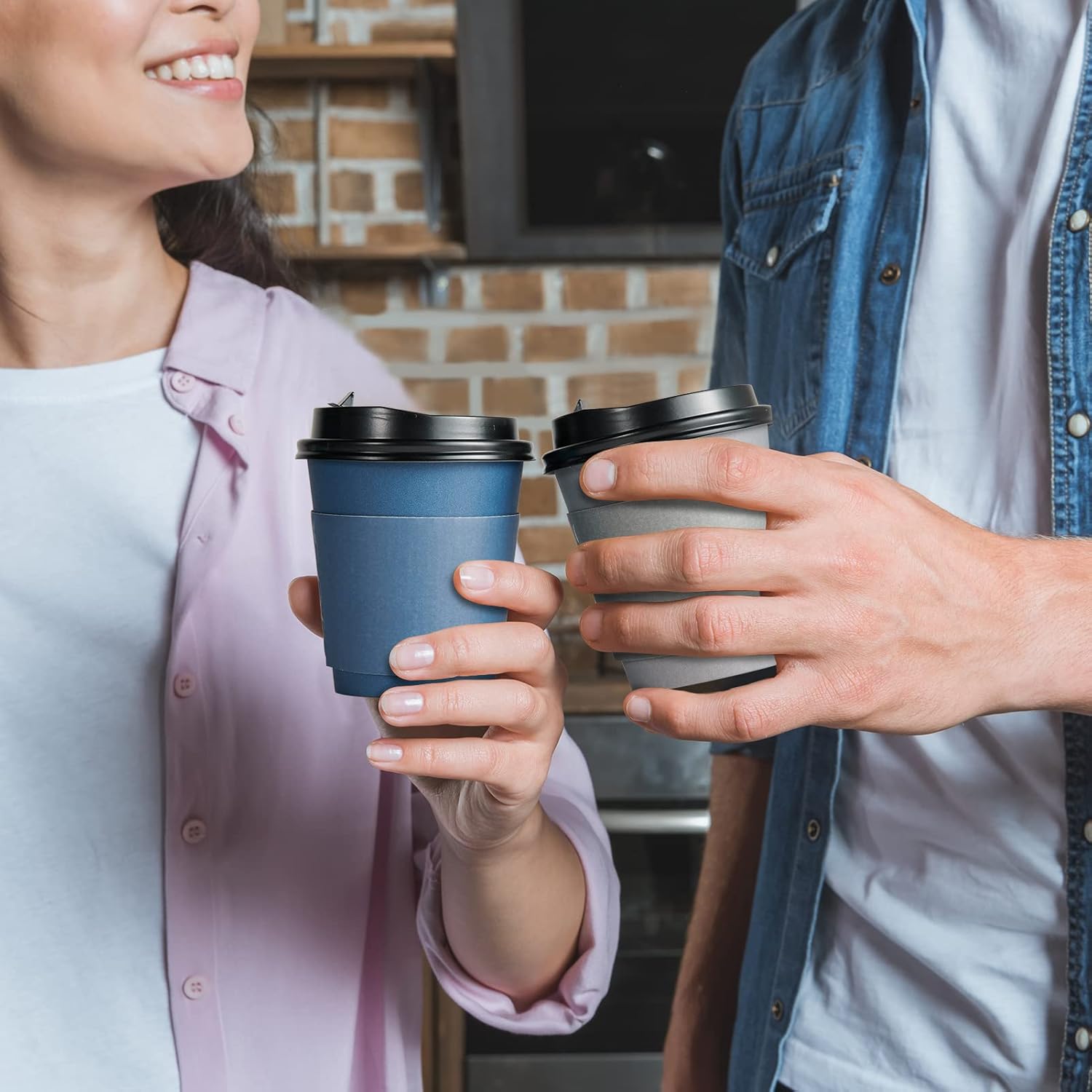 - Leak Proof and Durable: We have designed drinking cups the lids to form a tight seal with the mouth of the cup to help prevent leaks and spills, and the matching cup sleeves will effectively prevent the release of heat and won't burn your hands