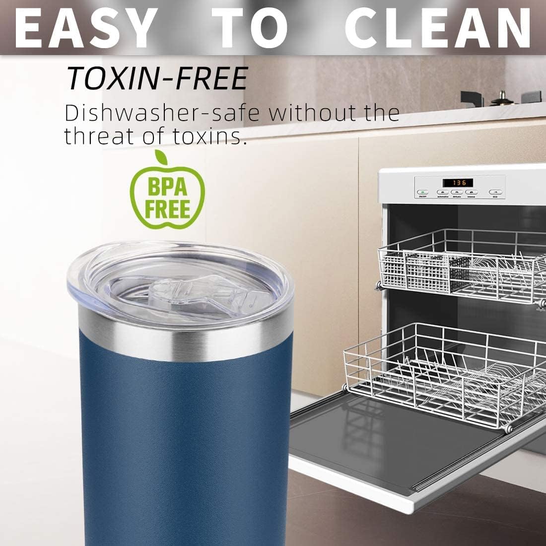- LIFETIME DURABILITY:304 food grade stainless steel body, BPA free, healthier than plastic cup. The insulated tumbler never sweat due to the Vacuum insulated design. Powder coating on the outside fits more comfortably in your hand, looks good, anti-slip