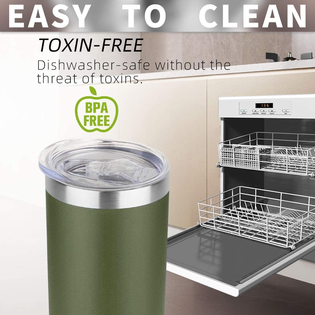 - ăLIFETIME DURABILITYă 18/8 food grade stainless steel body, BPA free, healthier than plastic cup. The insulated tumbler never sweat due to the Vacuum insulated design. Powder coating on the outside fits more comfortably in your hand, looks good, anti-slip.