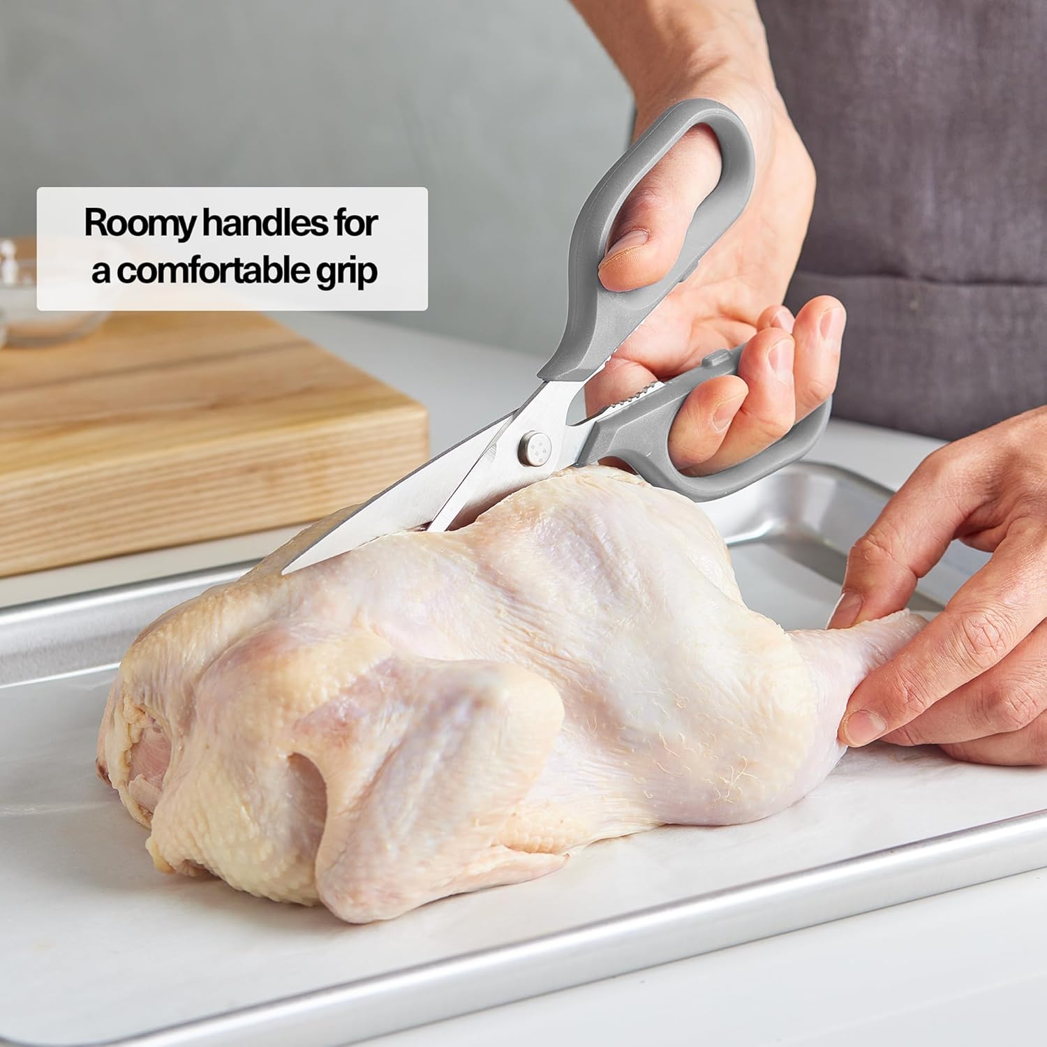 - Ultimate Kitchen Tool: Misen's professional-grade gray scissors are not just any regular tool - they redefine versatility in the kitchen landscape. They can tackle any job in the kitchen or around the house. Easily debone an entire chicken, snip fresh herbs, slice up a pizza, or even just use them to open up your Amazon packages. There's a million uses for these around the kitchen and house.