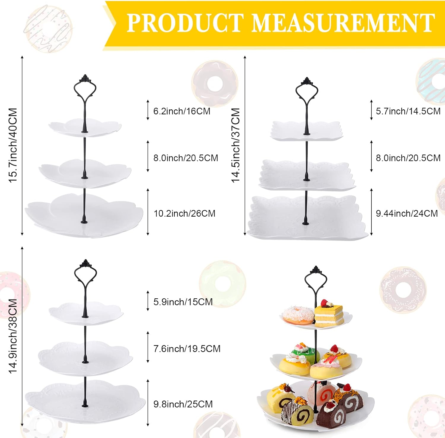 - Enjoy DIY Fun: the cupcake stands are easy to use and assemble, you'll need to assemble them in different sizes together, after using them, you can take them apart into 3 individual trays, convenient and clean