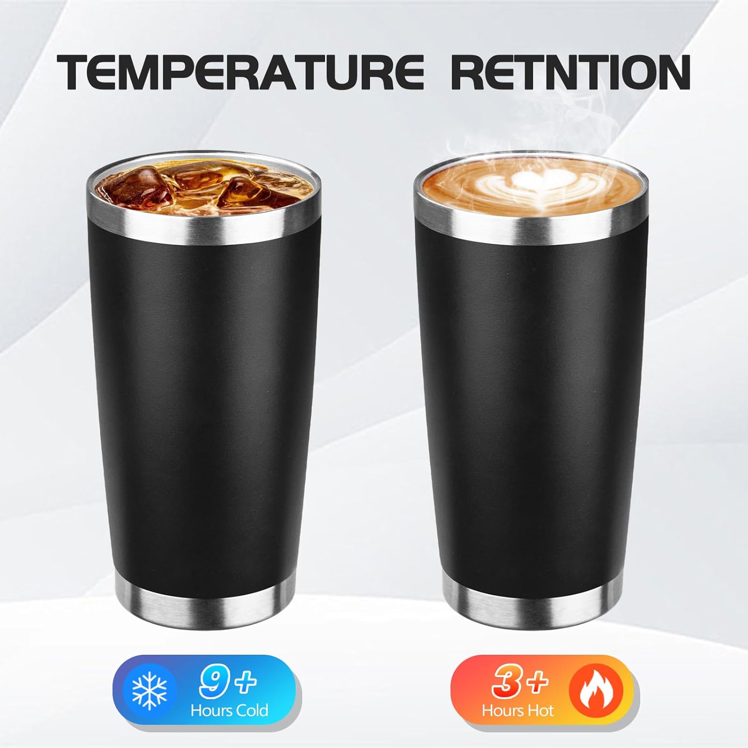 StarSpeed 20oz Tumbler Bulk with Lid, Stainless Steel Insulated Tumblers Double Wall Vacuum Insulated Travel Mug, Powder Coated Coffee Cups for Hot and Cold Drinks(Black,8)