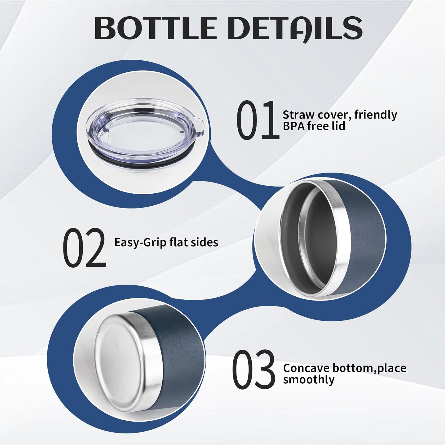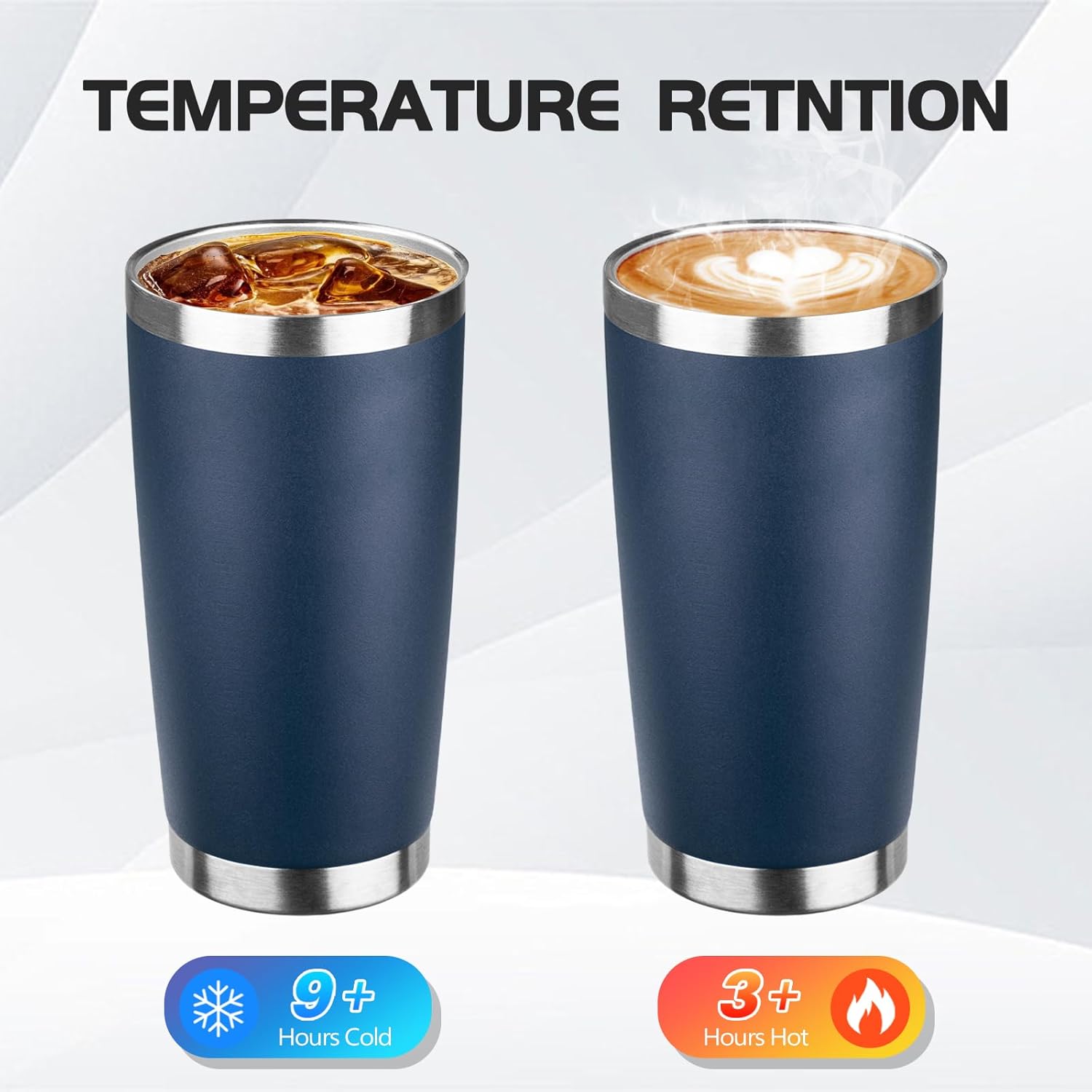- BPA Free Lid: Stainless steel tumbler set with lid and an opening for drinking, be aware of how hot your coffee is before taking a sip. Under normal temperature, the insulated coffee cup keep your water hot for three hours and cold for nine hours
