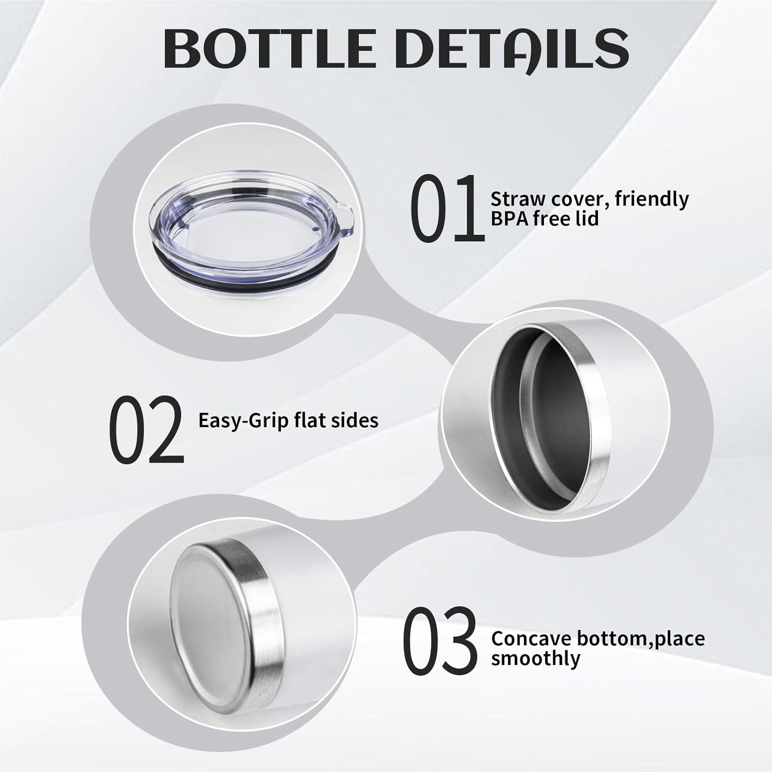 - BPA Free Lid: Stainless steel tumbler set with lid and an opening for drinking, be aware of how hot your coffee is before taking a sip. Under normal temperature, the insulated coffee cup keep your water hot for three hours and cold for nine hours