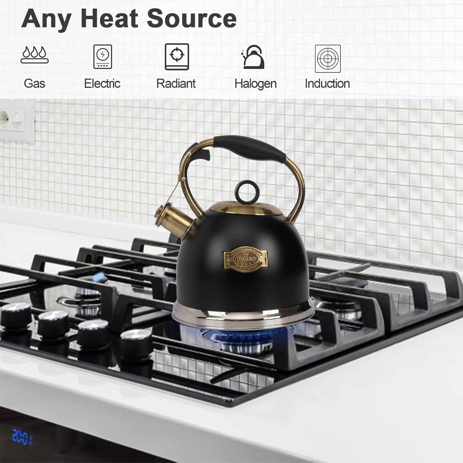 - Stainless Steel Design:Whole teakettle body are made of stainless steel, The thick body making it more durable and sturdy. 5-layer metal bottom with high thermal conductivity for more uniform heating and longer service life.