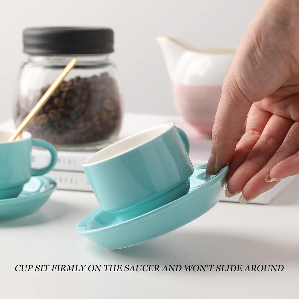 - Design Style - 2.5 Ounce espresso cups are small and cute with insulated handles. Fits your coffee machine. Imagine each cup bring different taste and enjoyment.