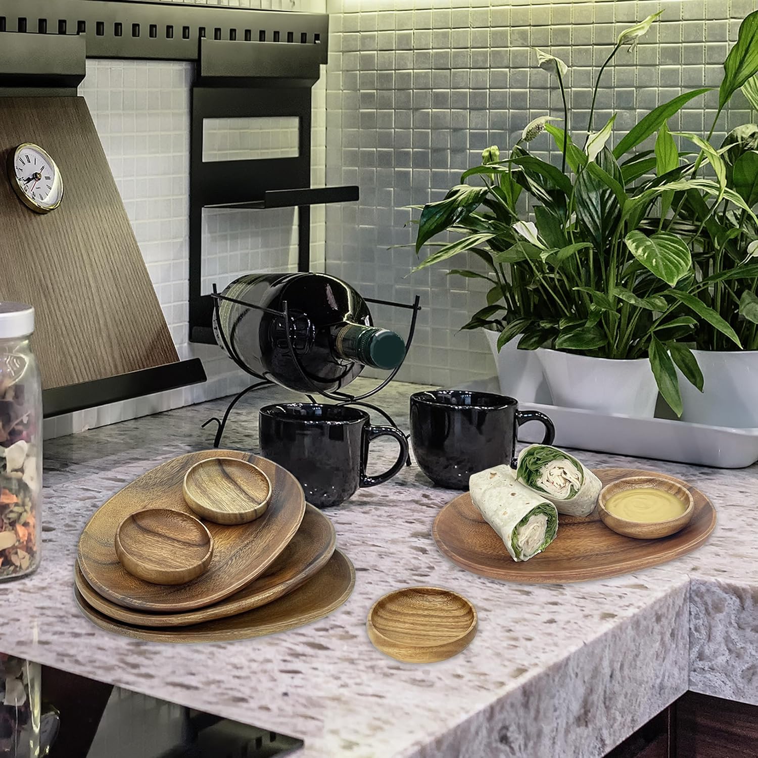 - SIZE: Our 12”L, 8”W, 1"H Oval Serving Tray with 4”ø x 1”H Acaica Wood Multipurpose Bowl, Set of 4, is perfect for serving, sandwiches, sushi, chips and dip, hors d'oeuvre, charcuterie, cheese and more.