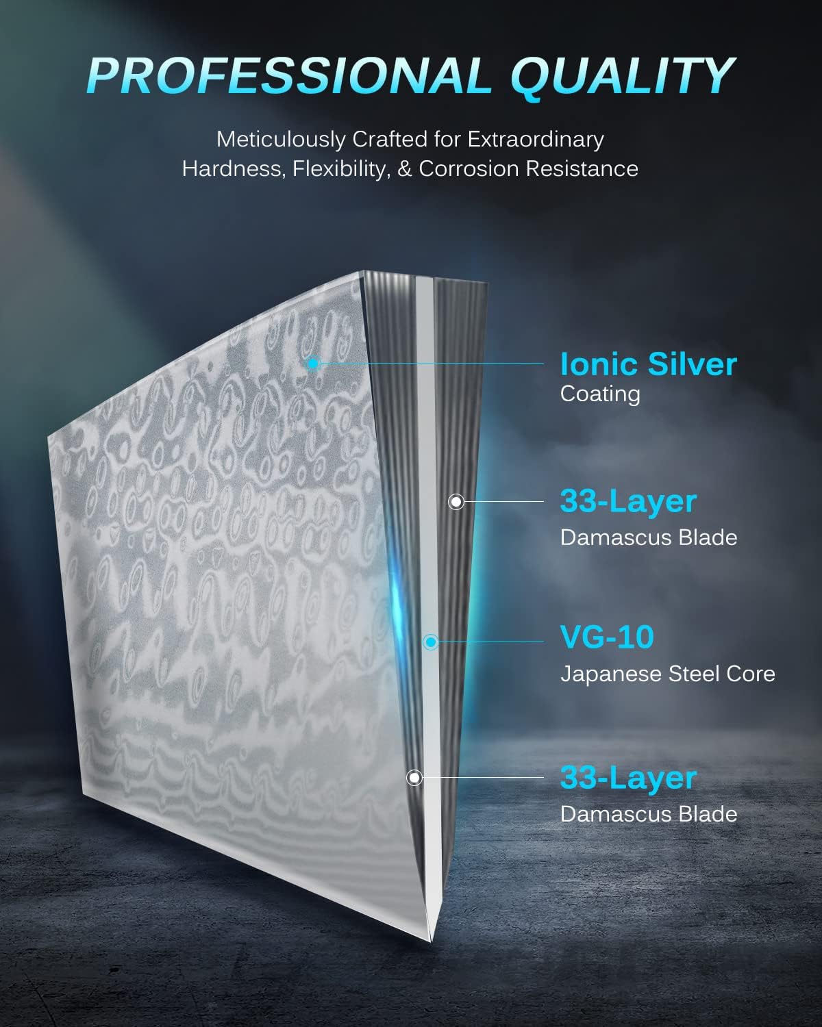 KYOKU Kiritsuke Chef Knife - Gin Series - 8.5" Multipurpose Professional Chef Knife, Japanese VG10 Damascus Stainless Steel Kitchen Knife with Silver Ion Blade G10 Handle Mosaic Pin