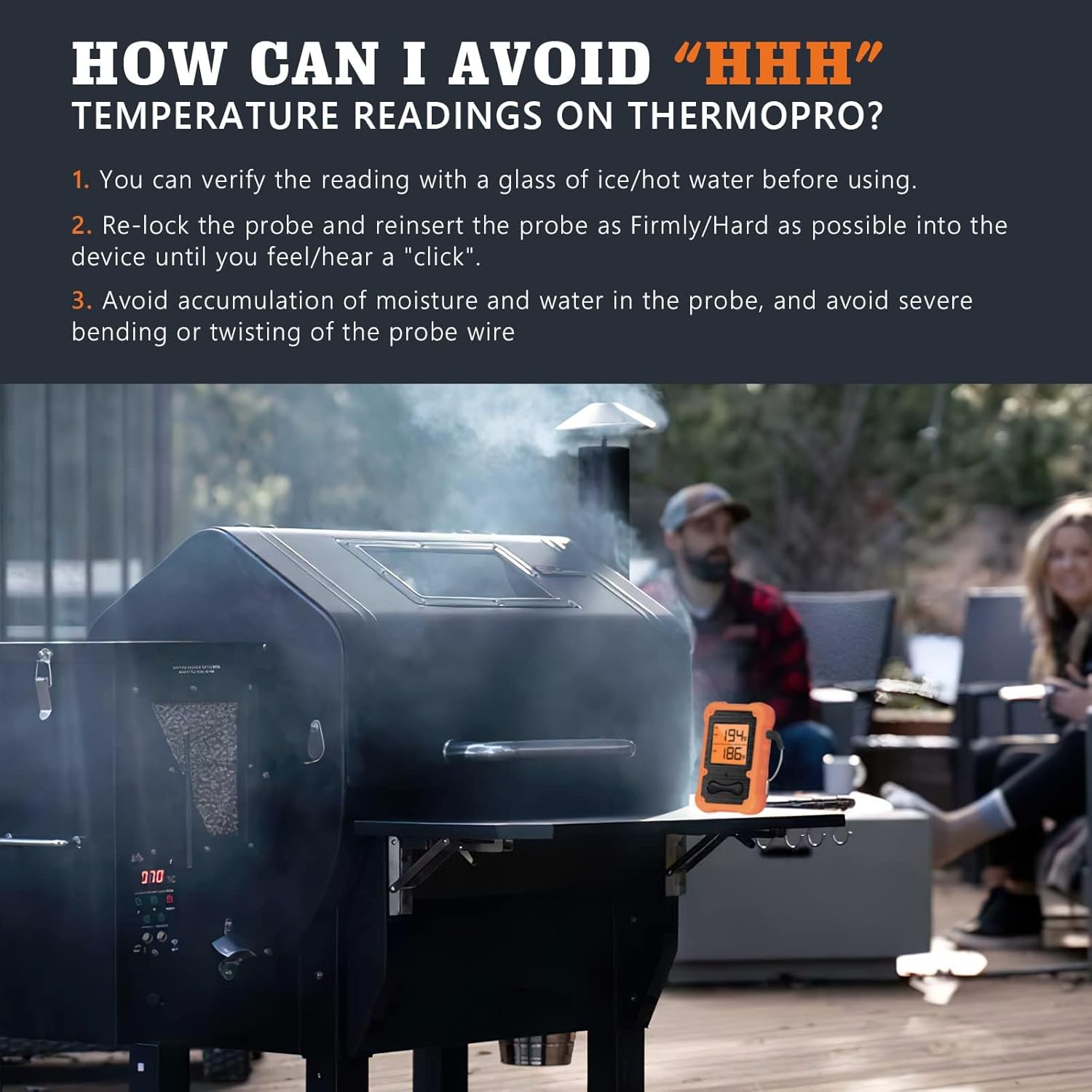 - CALIBRATE TEMPERATURE CORRECTLY: You can calibrate the thermometer probe before use, a glass of ice water is the best way to calibrate it. Please avoid twisting the probe cable repeatedly, it will cause breakage