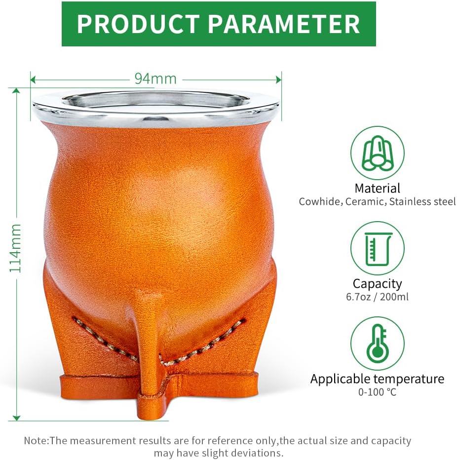 - ăThe main design of mate cupăCUOPRU mate tea cup has ceramic inner struction for anti scald, the outer layer made in leather, and the cup mouth is designed with 304 stainless steel. which can prevent different types of corrosion well.