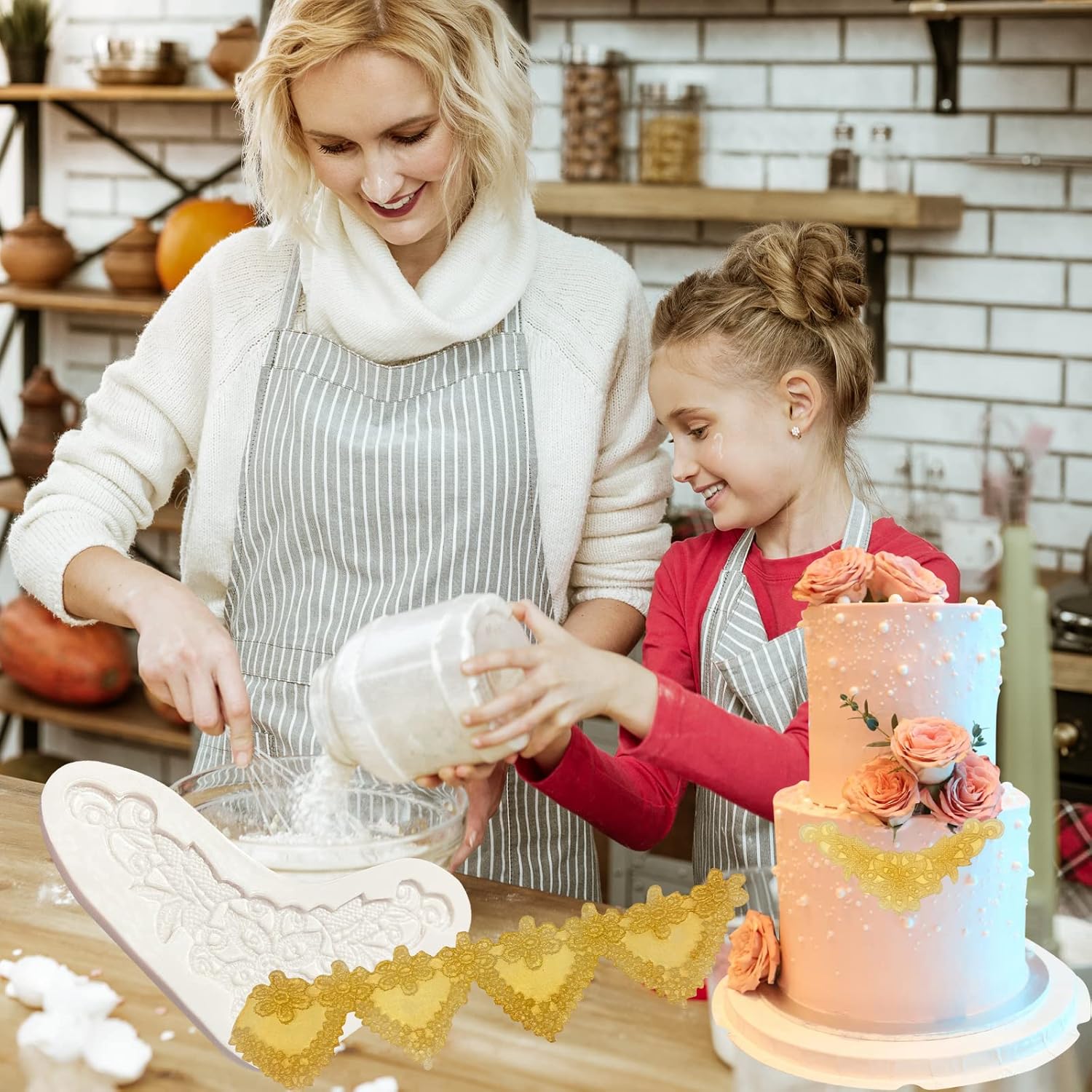 Lace Fondant Mold Set of 3, Edible Lace border Cake Decorating Imprint Mat Silicone Molds for Wedding, Valentine's Day, Chocolate, Cupcake, Cookies, Gum, Candy, Marzipan, Polymer Clay, Epoxy Crafts