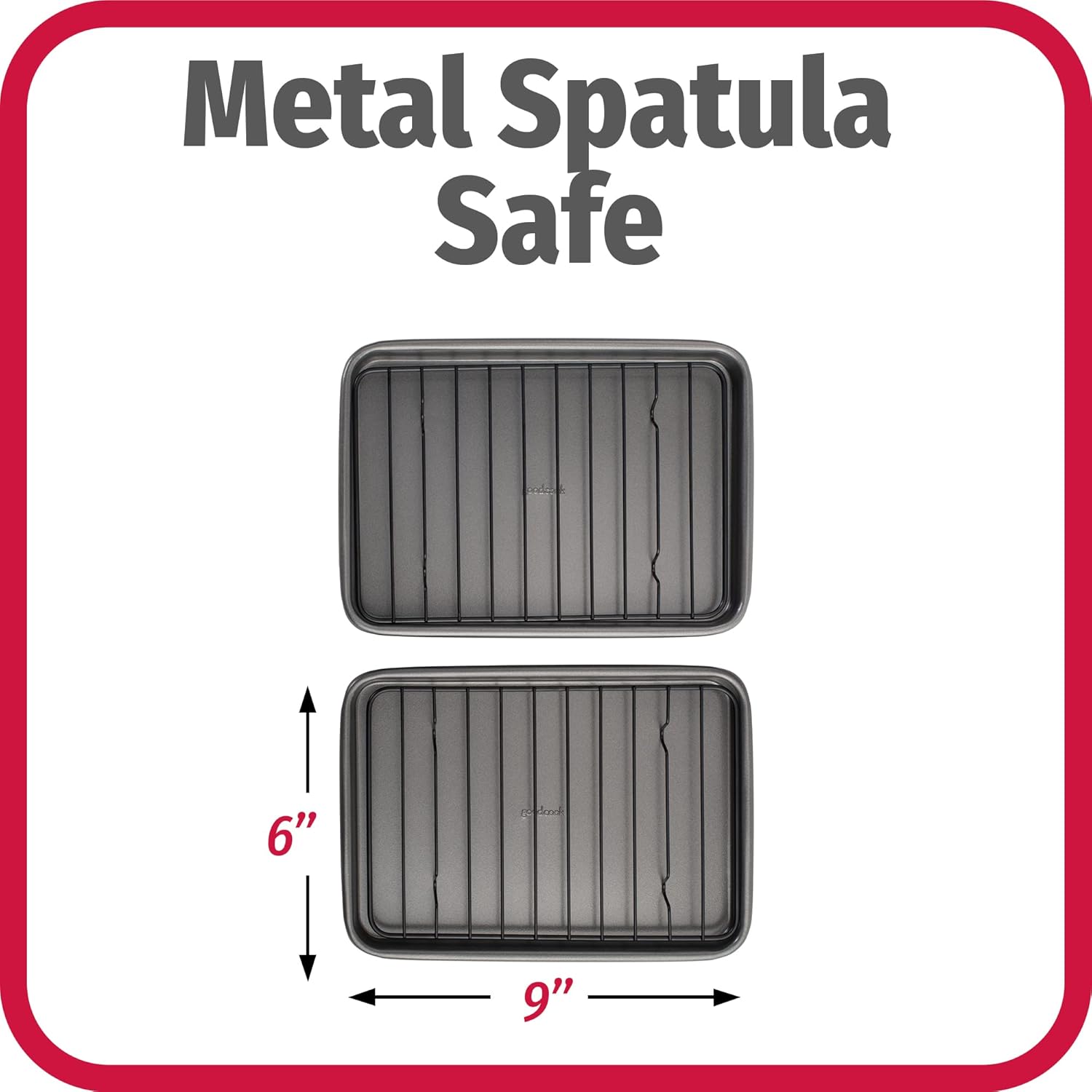 GoodCook Set of 2 Nonstick Steel 9" x 6.2" Toaster Oven Mini Baking Sheets with Racks, Gray
