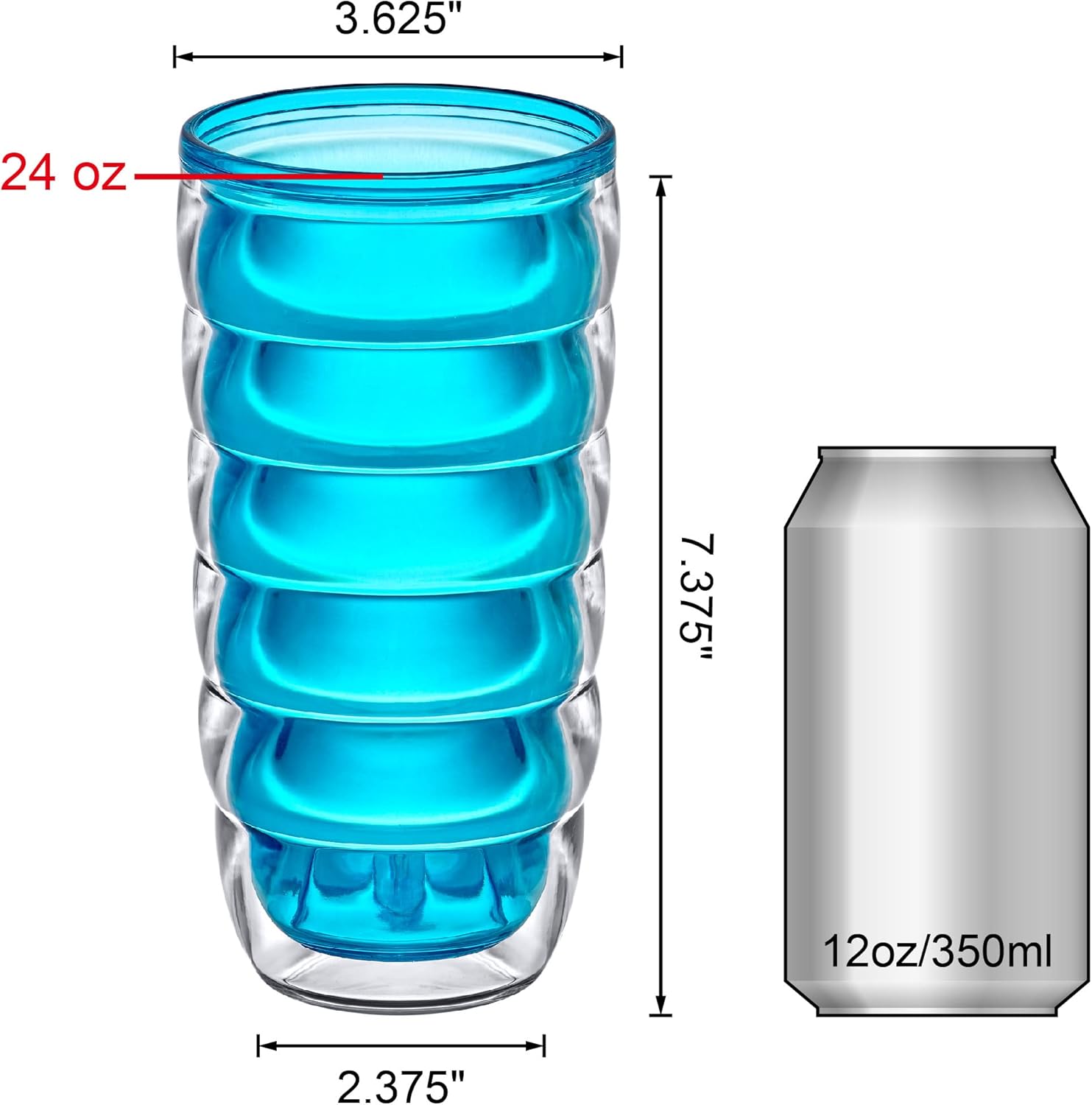 Amazing Abby - Arctic - 24-Ounce Insulated Plastic Tumblers (Set of 4), Double-Wall Plastic Drinking Glasses, Mixed-Color High-Balls, Reusable Cups, BPA-Free, Shatter-Proof, Dishwasher-Safe