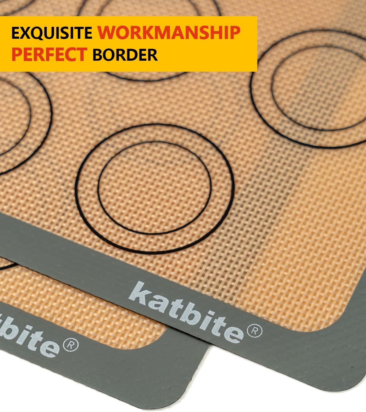 Macaron Silicone Baking Mats, Katbite Silicone Macaroons Baking Mat Set of 2 Half Sheet (11 5/8" x 16 1/2") Reusable & Nonstick Macarons Baking Supplies Silicone Bakeware Mats for Macarons Cookies
