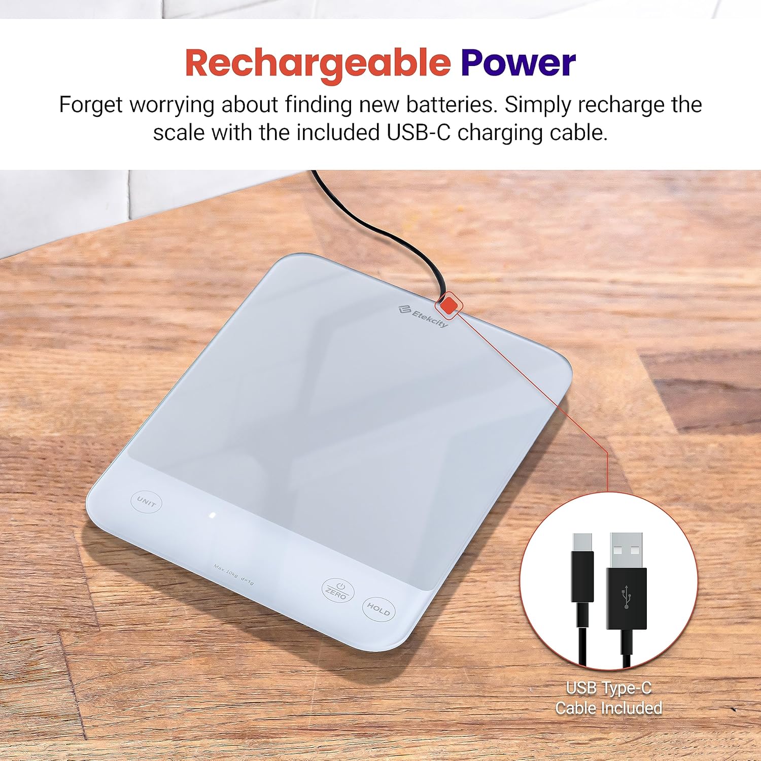 Etekcity Food Kitchen Scale, 22lb Digital Weight Scale Grams and Ounces Rechargeable Waterproof Tool for Weight Loss, Cooking, Baking, Meat, Bread, Large 0.05oz/1g Accuracy