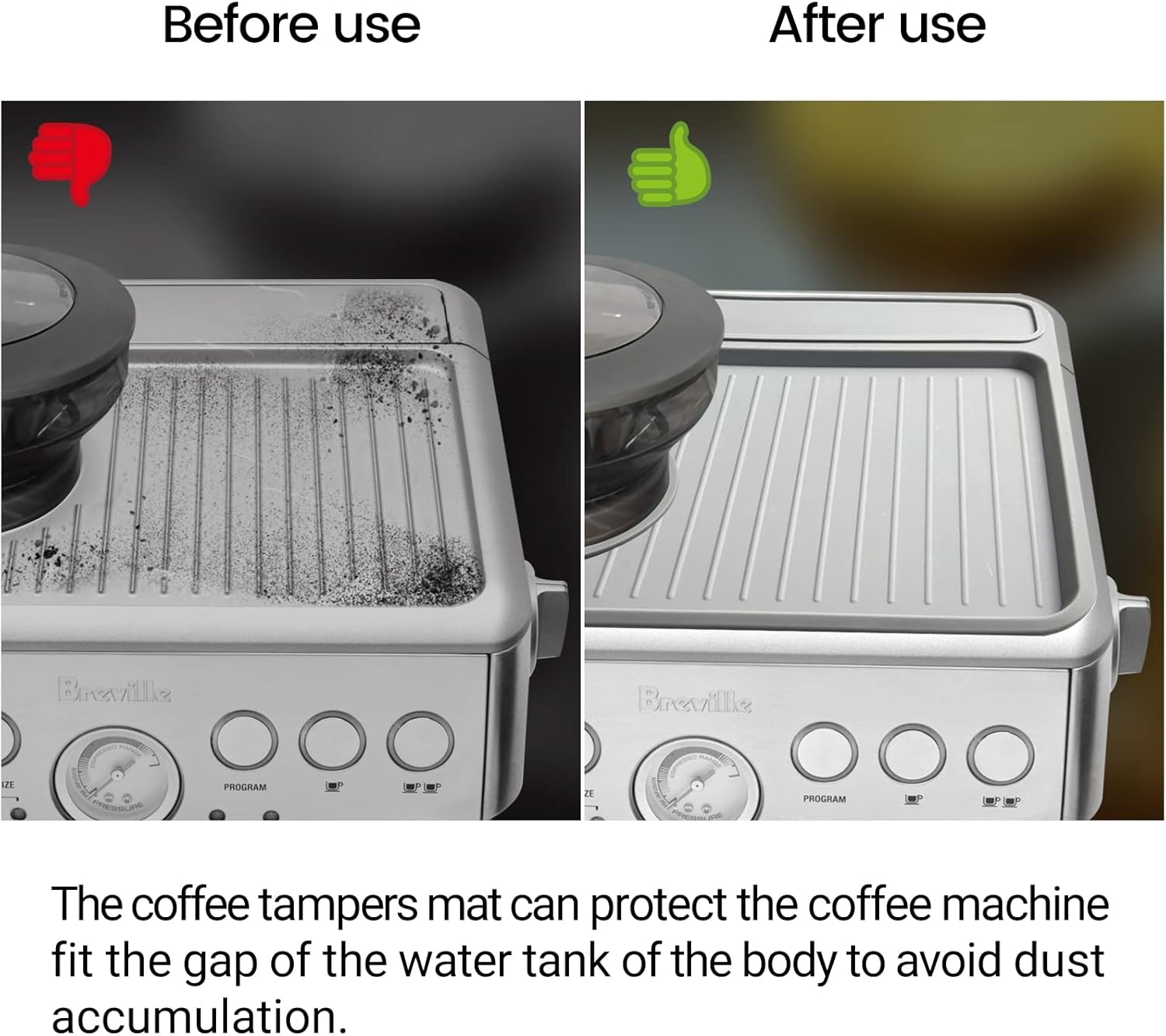- 【Prevents Scratching】 The anti-slip design make the espresso tamp mat cling to the coffee machine and will not slide easily. Prevents objects on top from scratching the coffee maker and expands the life of the breville barista express machine.