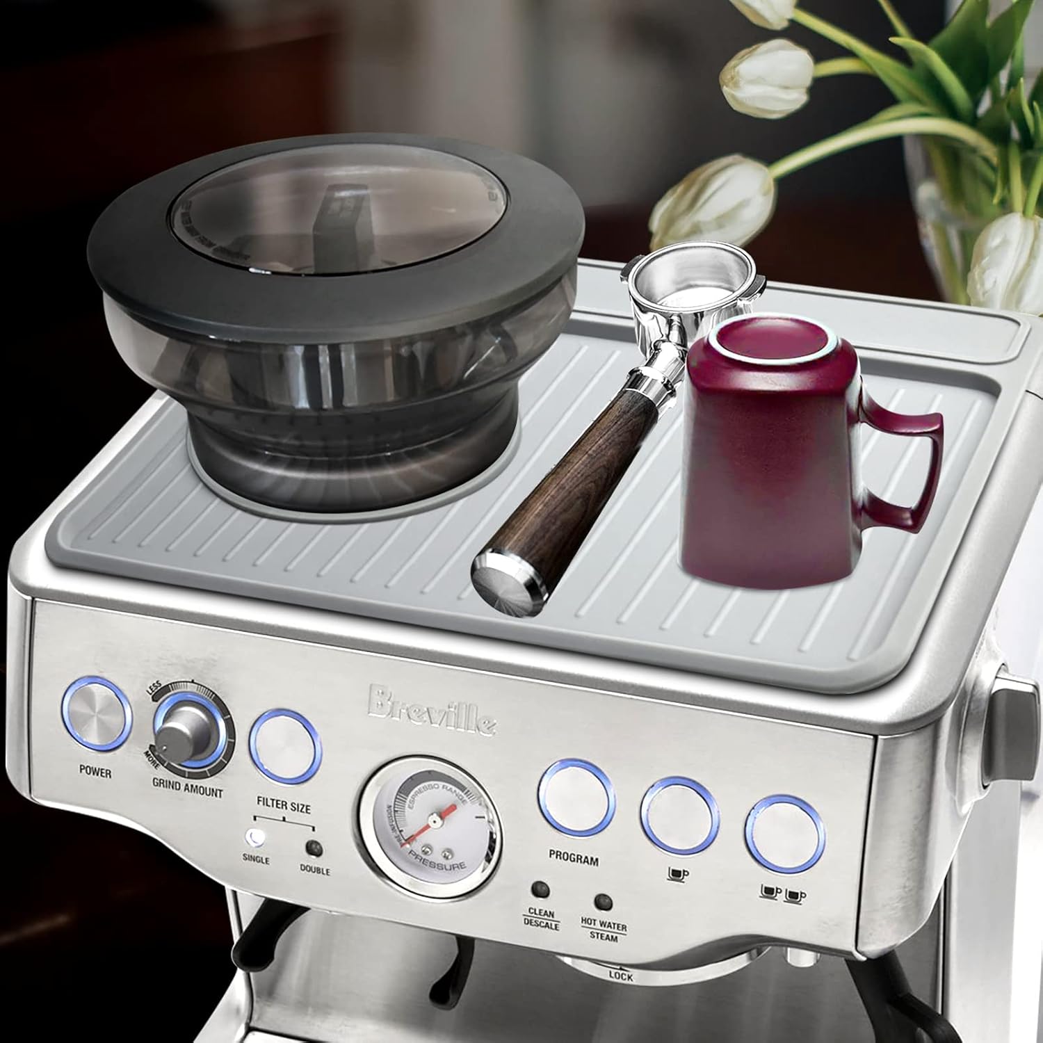 Tamping Mat for Breville 870/880, Espresso Tamper Mat for Barista Touch/Express, Silicone Prevent Scratching, Top Mat for Breville Espresso Machine Accessories, Waterproof Heat Resistant(Grey)