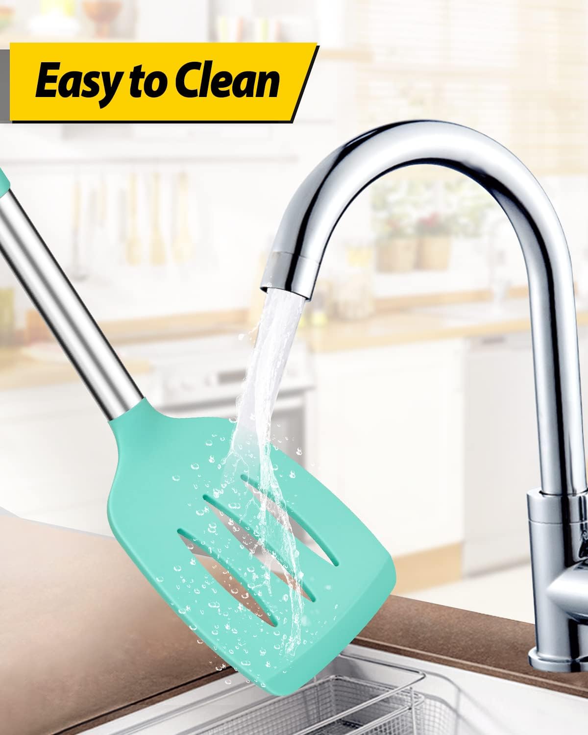- Widely Used : Thin and flexible edge of the silicone turner is ideal for flipping,frying and turning food; Large capacity design of cooking spoon, used to hold food more convenient; Slotted Spoon can quickly drain the water