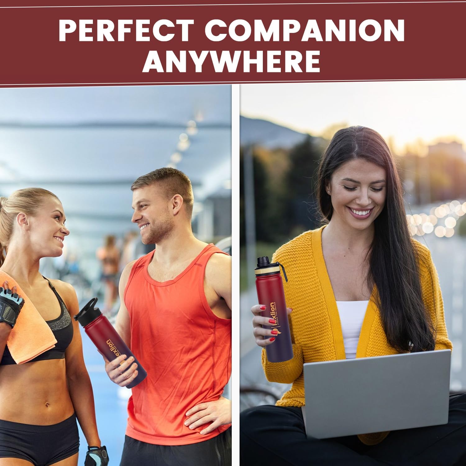 - ✅ LIDS & INFUSER/STRAINER- Lexlion water bottle 32 oz comes W/3 LIDS! a spout lid, a flip lid & and a third lid which is stainless steel lid, 100% leak-proof & dishwasher safe. It includes a newly designed 2-piece strainer stainless steel, a very convenient filter to make loose tea leaves, cold coffee brews, herbs, or fruit-infused water. Add them to the filter basket, close it & clip in the tea water bottle infuser with water. If an infuser is not needed, just remove it.
