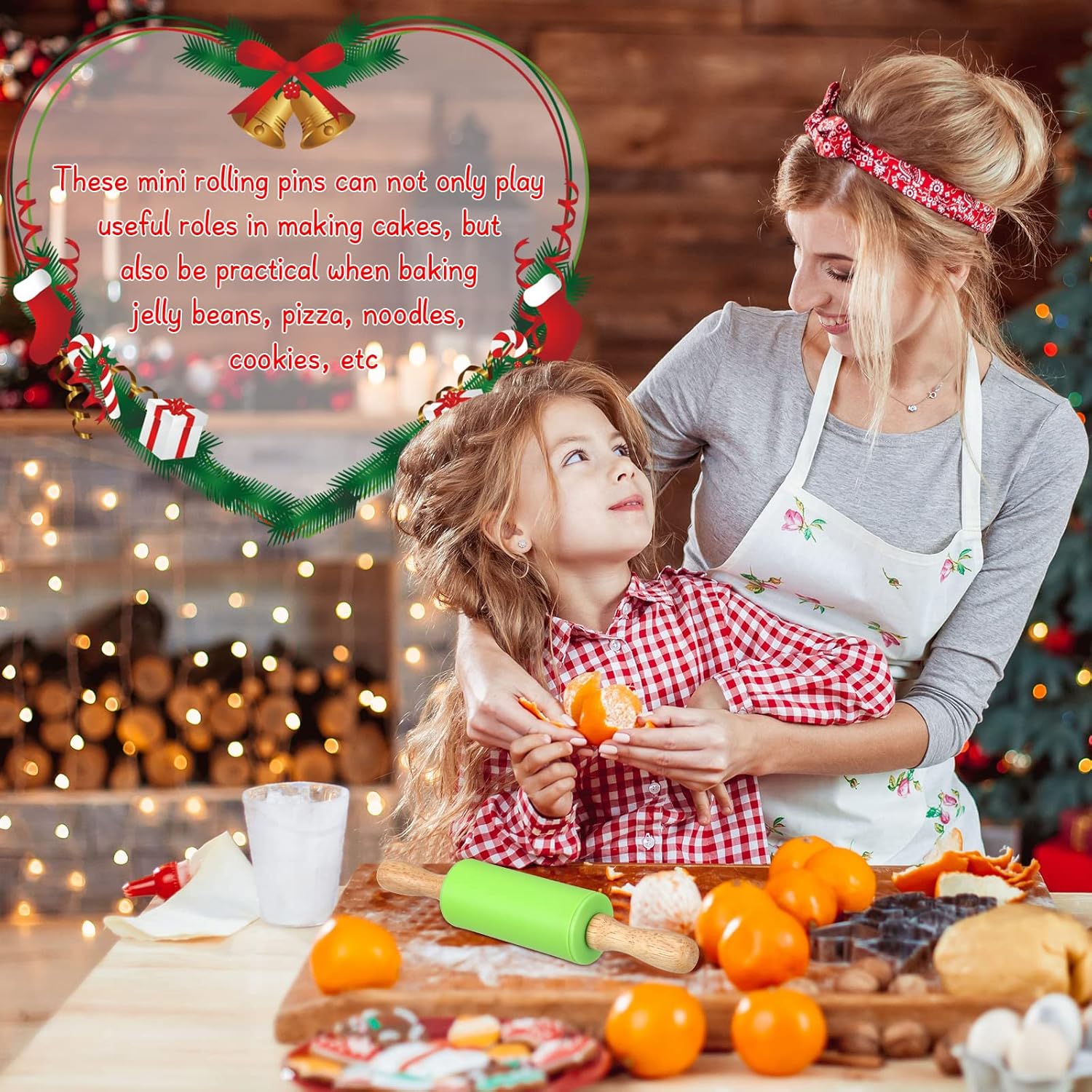 10 Pcs Small Rolling Pin Kids 9 Inch Mini Rolling Pin Silicone Wooden Cooking Pins Baking 5 Colors Non Stick Kids with Wooden Handle for Kitchen Dough Cookie Pastry Fondant Cake