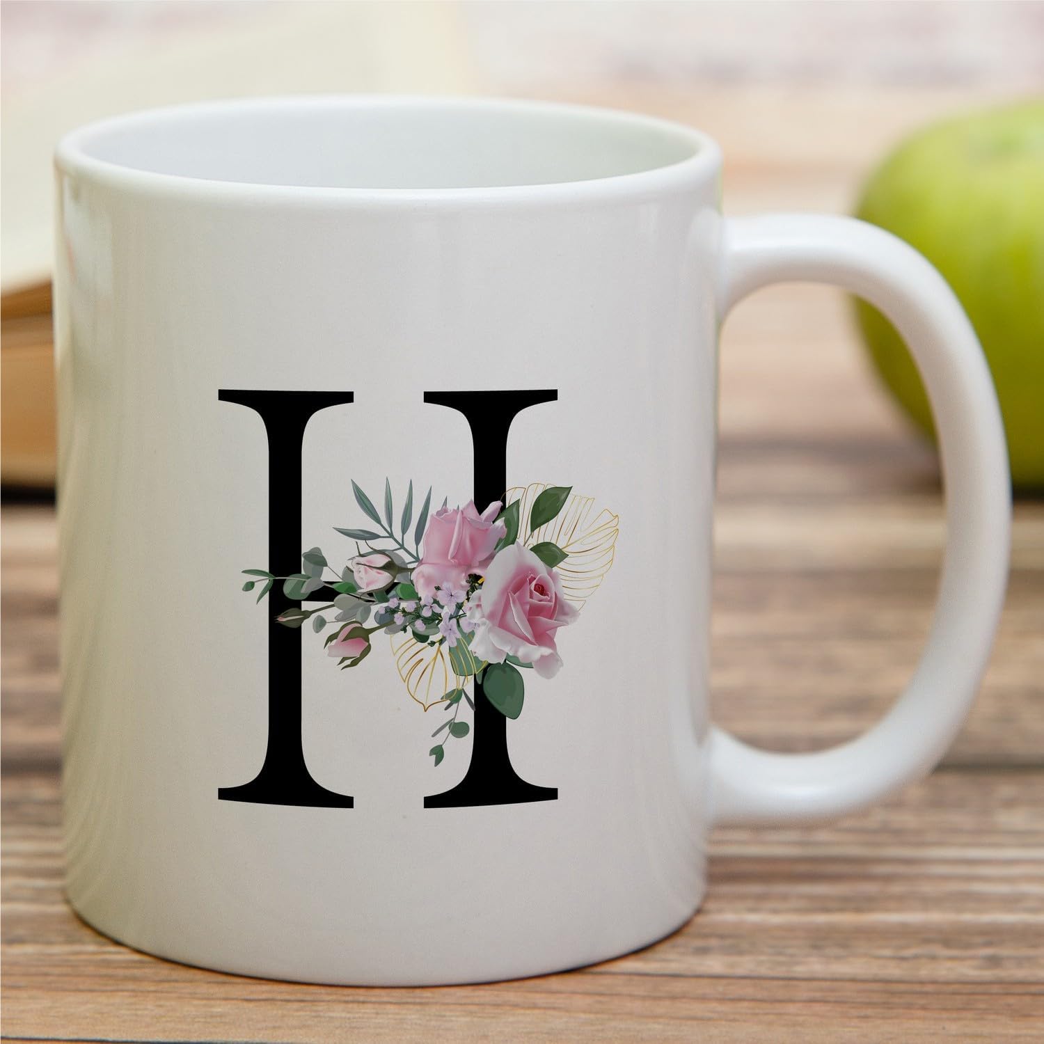 Retreez Initial A-Z Floral Botanical Bouquet Alphabet Monogrammed Monogram Mug 11 Oz Ceramic Tea Coffee Mugs - Appreciation Thank You Wedding Birthday Gifts for her friend coworker sister - H Initial